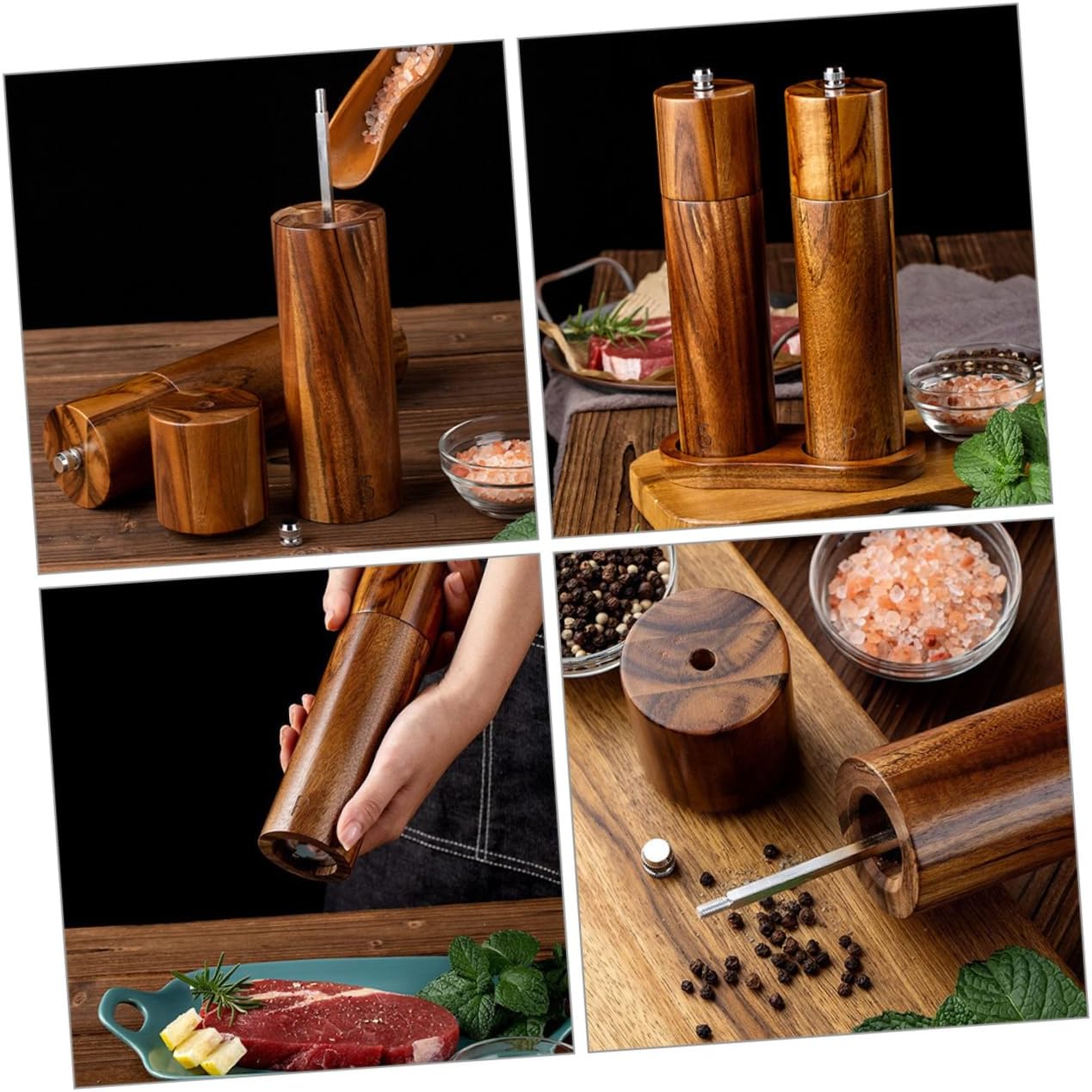 Package Include 2 x Pepper Features -Material:Stainless steel, ceramic, wood manual salt pepper grinder - Size: 22.00X5.50X5.50cm/8.65X2.16X2.16in hand crank pepper mill -Product Info:Pepper grinder - Easy cranking to turn coarse sea salt, pepper and other fillers into fine consistent with a good quantity refillable pepper grinder mill. - Easy to clean, the material is smooth in surface so that it can be cleaned completely with water pepper grinder manual. - A Perfect addition for home, kitchen and restaurant. can be used to grind any variety of pepper, salt rock, sea salt Kitchen Gadget. - Well-made of stable and sturdy materials, safe and practical for lasting using time grinder pepper. - ColorLight Brown spice grinder - Use for pepper, sea salt, black pepper and more seasonings for camping, picnic, barbecue night and daily cooking Pepper Grinders.Goods DescriptionRefillable Pepper Crusher This Pepper is made of stable material, which can serve you for longtime.pepper shaker grinder This pepper is simple and convenient to use, suitable for daily cooking, indoor or outdoor barbecue, etc.hand crank pepper mill Lightweight and portable design, easy to carry