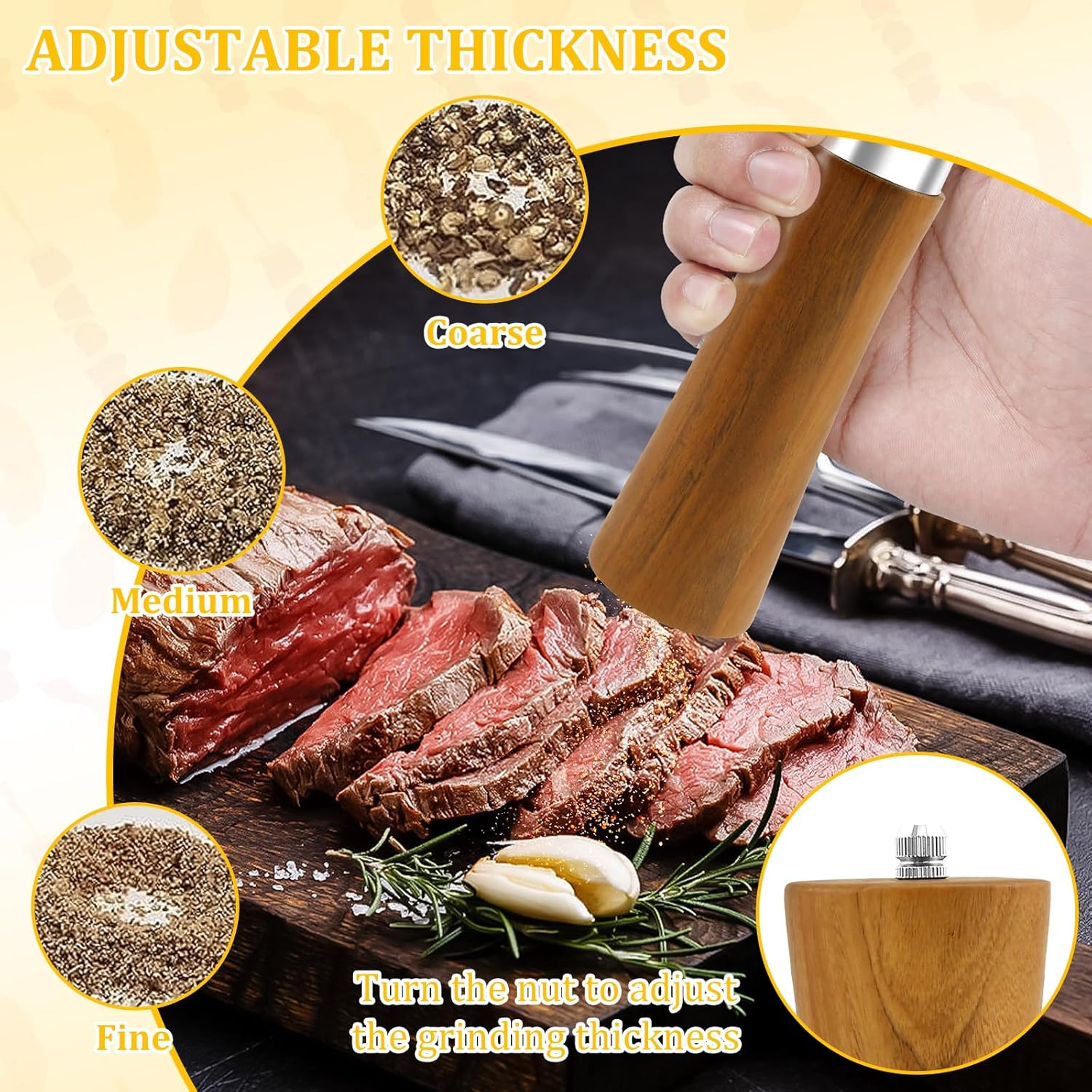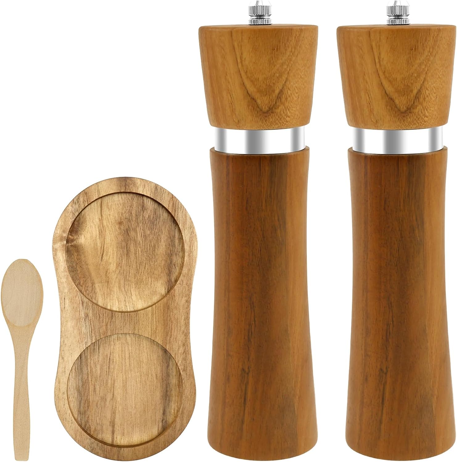 Parts List:2 x Grinders1 x Base1 x SpoonProduct Specification:Description:This salt and pepper mill set combines functionality and style, crafted from quality wood for a long lasting and elegant addition to your kitchen. Its versatile design makes it suitable for grinding various seasoningsKey Feature:Adjustable and Easy to Use: With its adjustable coarseness settings and detachable design, this grinder set offers convenience and efficiency for your seasoning needsSpecification:Product Name: Salt and Pepper Grinder SetColor: BurlywoodTexture: WoodSize: about 20.5 x 5.5 x 5.5 cm/8.07 x 2.17 x 2.17 inNote:1. There may be slight differences between the picture and the actual color of the commodity. We will try our best to show you the exact color2. Please allow slight dimension differences due to manual measurement