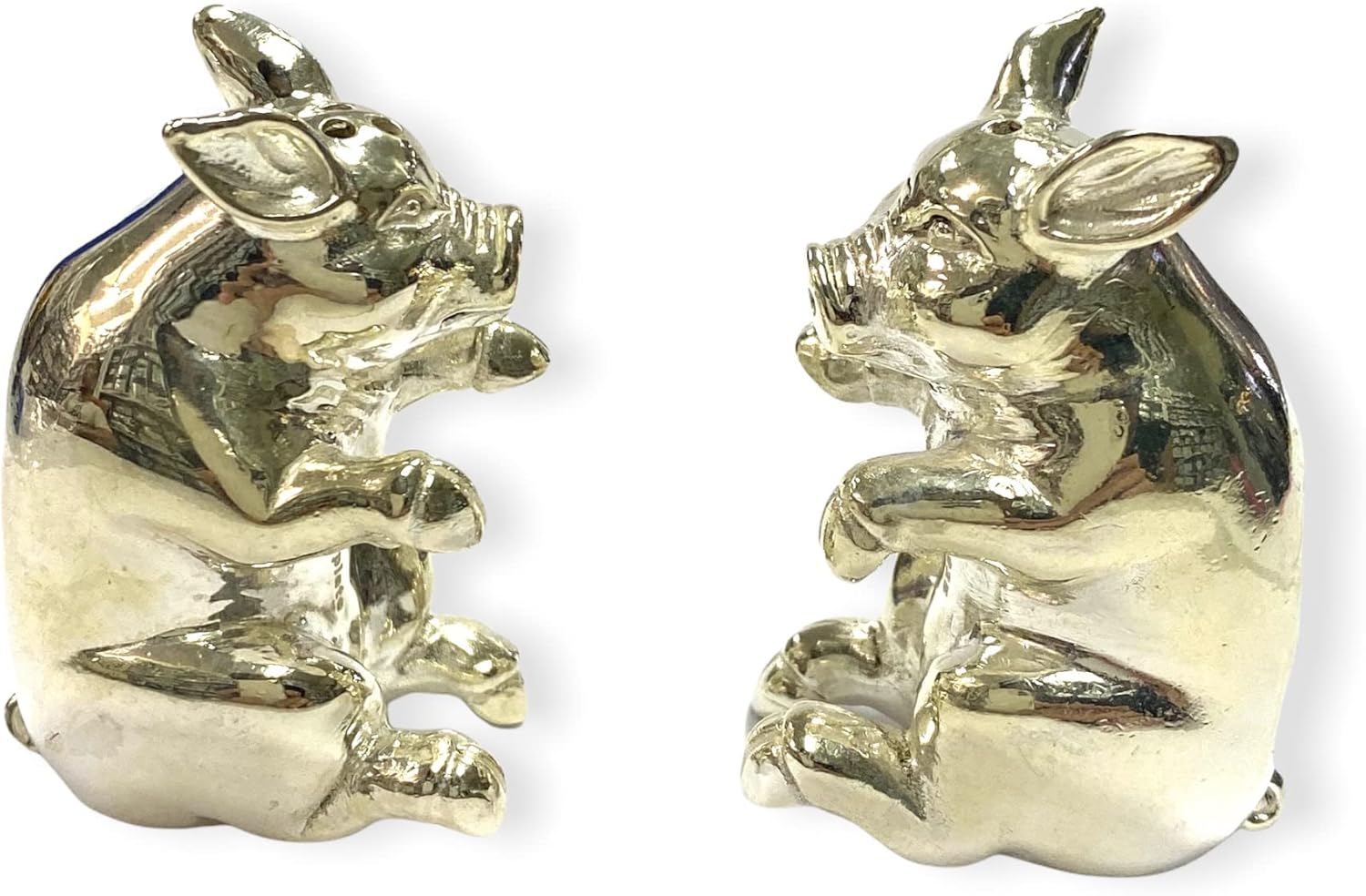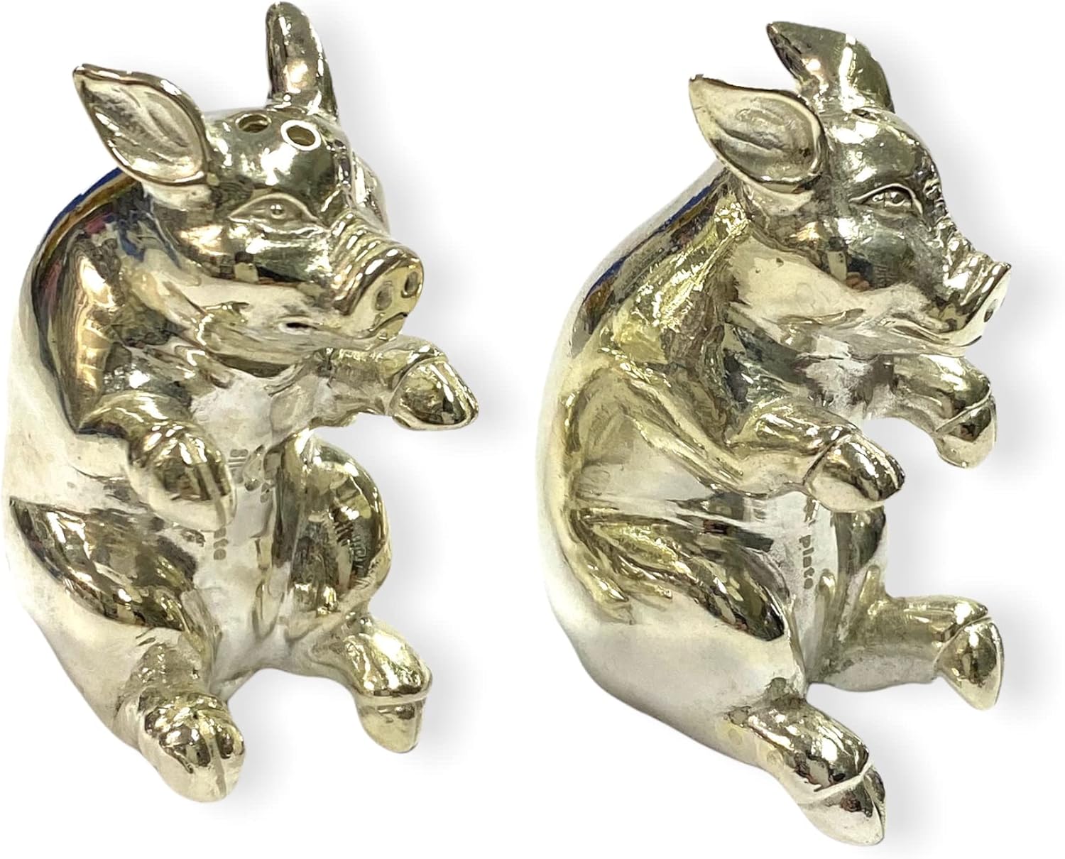 Novelty Style Piglet Pair Salt and Pepper Shaker Pots 925 Silver Plated