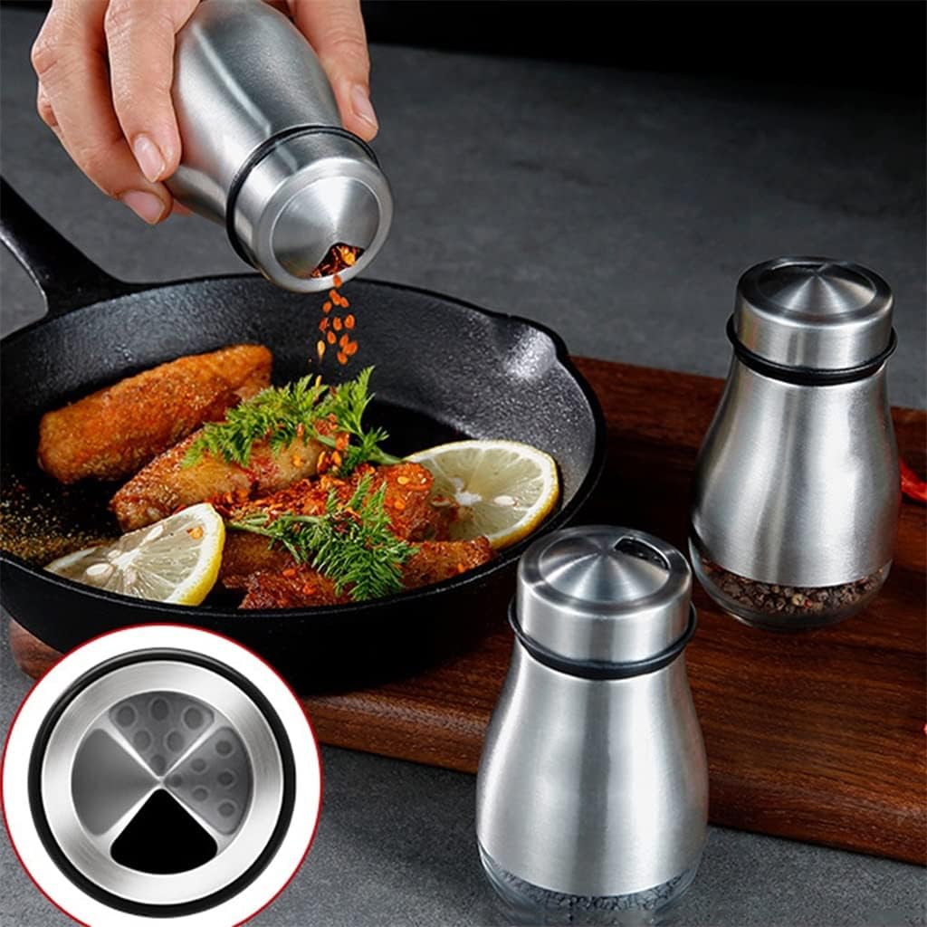 DescribeThere are 3 adjustable . Small, medium and large holes are for different herbs or spicesMade of the highest quality stainless steel and glass, unbreakable, sturdy, dishwasher safe, easy to clean and long lastingRefilling salt and pepper shaker holders is super easy! Quick and easy refilling simply by unscrewing the stainless steel capPear-shaped glass and rust-resistant design provide the right feel and weightClear glass bottom makes it easy to see if refilling is requiredProduct parametersMaterial: 304 stainless steel + glassApplicable space: kitchenColor: as picturedSize: 4.1*2.1 Applicable : the publicPackage includes: Seasoning container*1 piece (excluding other demo products)notes:1. Due to different monitors and lighting effects, the actual color of the product may be slightly different from the picture color. Thanks!2. Due to manual measurement, the allowable measurement deviation is 1-3cm3. Due to material and process problems, there will be some peculiar smell when receiving the goods. After washing, put it in a ventilated place to ventilate to remove odors.The bottom is transparent, the inner seasoning is clear