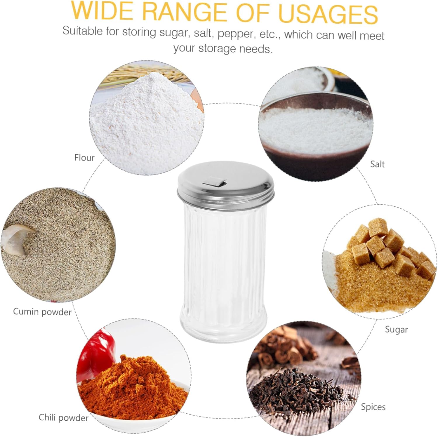 Package Include 4 x pepper shaker Characteristics -Size:13.50X7.50X7.50cm/5.31X2.95X2.95in kitchen utensils -Easy to clean: Cleaning this seasoning container is a breeze, and its user-friendly functionality makes it easy to use and refill with your favorite spices -Capacity: 330ml seasoning dispenser - design: Owning the and break resistance ability, very , with excellent texture kitchen seasoning jar -Multipurpose functionality: Suitable for filling a variety with seasonings Suitable for filling salt, chili powder seasoning bottles -Material:Stainless steel, glass pepper jar -Color:Transparent pepper dispenser -Versatile usage: Widely using range, suit for household kitchen, restaurant, dining room and some other places seasoning shaker -Kitchen helper: Not only is this seasoning jar functional, but it also adds a touch of sophistication to your kitchen with its sleek and modern design kitchen seasoning containersGoods Descriptionsalt Made from glass, stainless steel, this jar is built to last. shaker Enhance your kitchen with the kitchen condiment bottle.seasoning shaker Its minimalist appearance adds a stylish touch to your kitchen decor.kitchen utensils Its multi-functional design allows you to store a variety of seasonings including pepper, salt, and so on