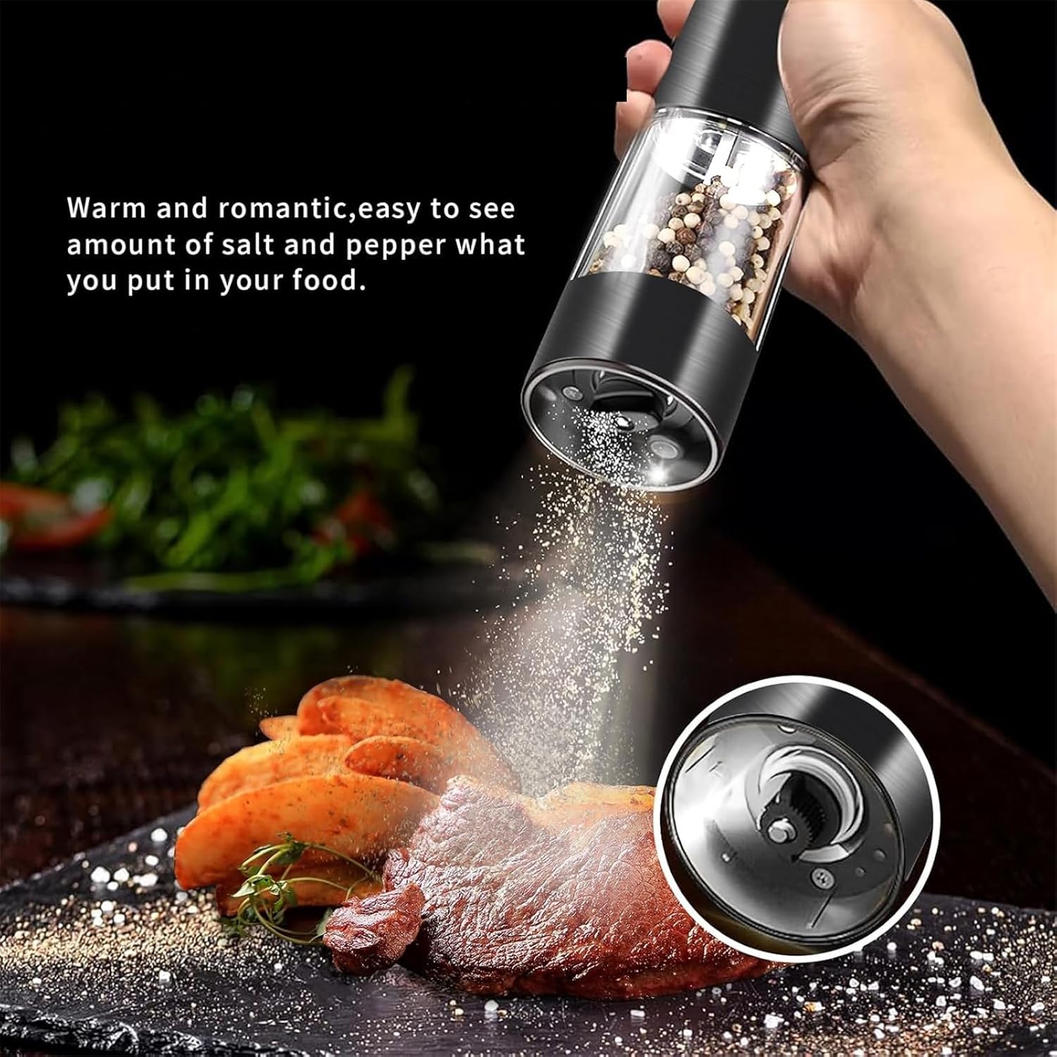 Rechargeable Salts Grinder Peppers Automatic Electric Mill Spices Mill Texture Suitable For Baking EnthusiastsFeatures:effortless seasoning with the electric salts and peppers grinder set, featuring touch operations for quick and easy grinding, perfect for enhancing your culinary creation.This rechargeable grinder set offer adjustable coarseness, for precisions in dim setting, and refillable designs, ensuring long lasting use and convenience.Suitable for home cooks, professional, and cooking enthusiasts who value efficiency in their kitchen endeavors.Perfect for daily home cooking, elevating dishes at dinner parties, enhancing during outdoor picnics, or providing freshly ground spices in restaurant setting.Crafted from materials, this grinder set combines functionality with elegances, making it a thoughtful family and friend who appreciate kitchen tool.Specifications:Texture: Capacity 70MLSize: Approx. 2x6.7inch(5.08x17.02cm)Package Includes:1 Set Electric GrinderNote:Please allow 1-2cm errors due to manual measurement.Due to the differences between different monitors, the picture may not reflect the actual color from the item.