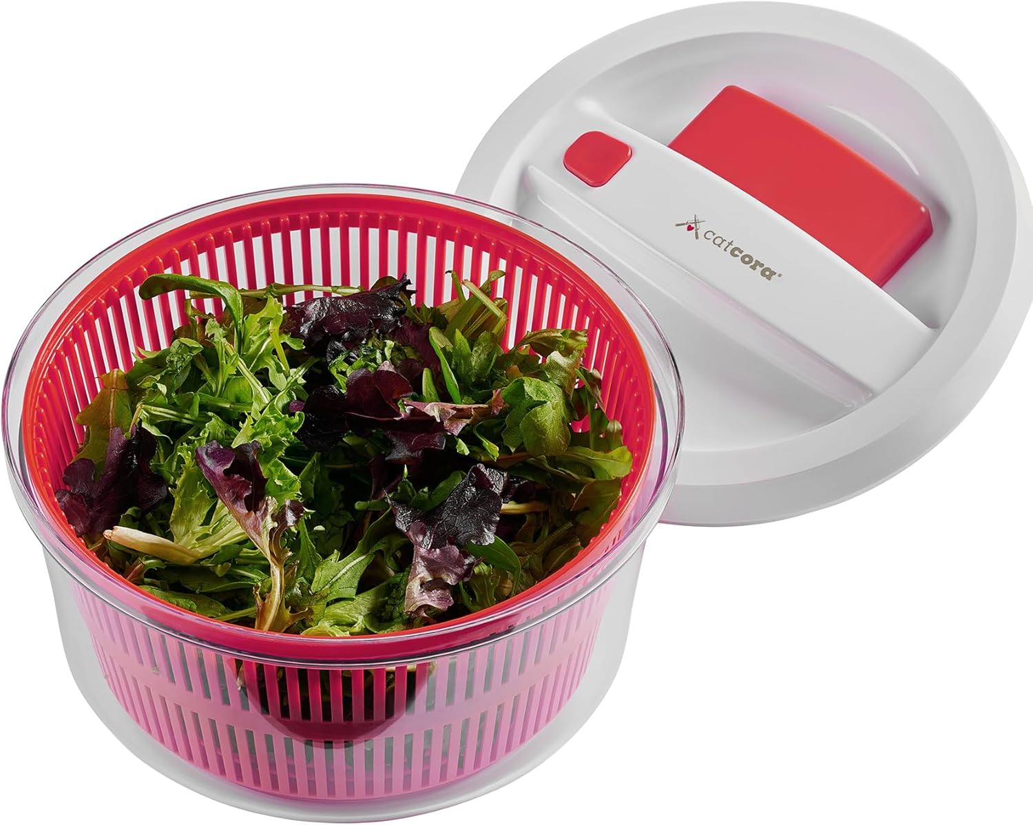A Salad Spinning Winner, from CatCora by Cutlery-Pro No more struggling with drying salad greens with the CatCora by Cutlery-Pro Quickspin Salad Spinner. Engineered for both home cooks and culinary professionals, this premium salad spinner delivers accelerated spinning with each press of the pump-action bar and a quick stop with a press of the break for perfectly dried salad greens. Superior Control, Reduced Hand Strain, and Perfectly Dried Salad Patented one-handed pump action for exceptional salad spinning and drying Ergonomic design for a comfortable, secure grip for effortless spinning Squeeze pump-action bar to spin the basket faster with each pump and press the built-in brake for a quick stop Inner basket works well as a colander and transparent bowl is perfect for serving salad Non-skid base holds spinner in place during use Versatile for drying all types of salad greens and herbs From Cat's Kitchen to Yours This salad spinner is proudly brought to you by Cat Cora, Iron Chef's first female winner and Culinary Hall of Fame honoree, combining professional-grade performance with the elegance and expertise of a true culinary icon. The one-handed pump-action bar accelerates the basket spinning faster with each pump. The built-in break brings the basket to a quick stop with a single press. The non-slip base keeps the spinner in place during use, the inner basket works well as a colander, and the transparent bowl is perfect for serving salad. The unique patented design (United States Patent No. US 9,027,471 B2) ensures lasting performance, for optimal spinning control, left or right handed. Caring for Your Quickspin Salad Spinner Hand wash and dry thoroughly. Designed for long-lasting spinning, to deliver years of reliable performance for home and commercial kitchens. Another Kitchen Winner, from CatCora by Cutlery-Pro, manufacturer of professional chef knives since 1981. Brought to you by HIC, a third-generation family owned and operated company in the USA since 1957.