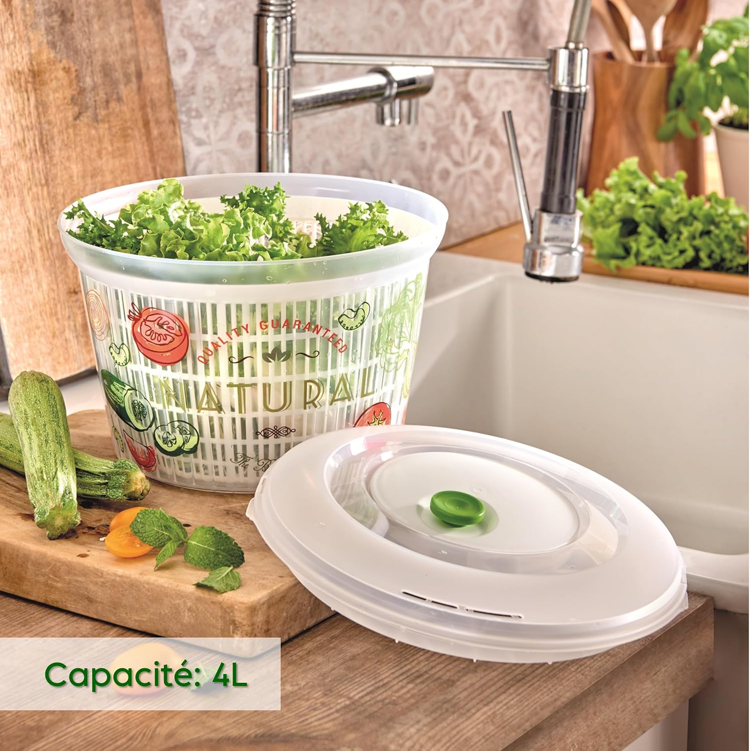 Product Description Our Salad Spinner is designed to efficiently wash and dry your lettuce and other greens in no time. Simply place your greens in the spinner, give it a spin, and watch as excess water is quickly removed. Say goodbye to soggy salads and hello to crisp, ready-to-eat greens. Set Contains: 1 x Salad Saver Ulaop Vintage 4 Liter Salad Spinner