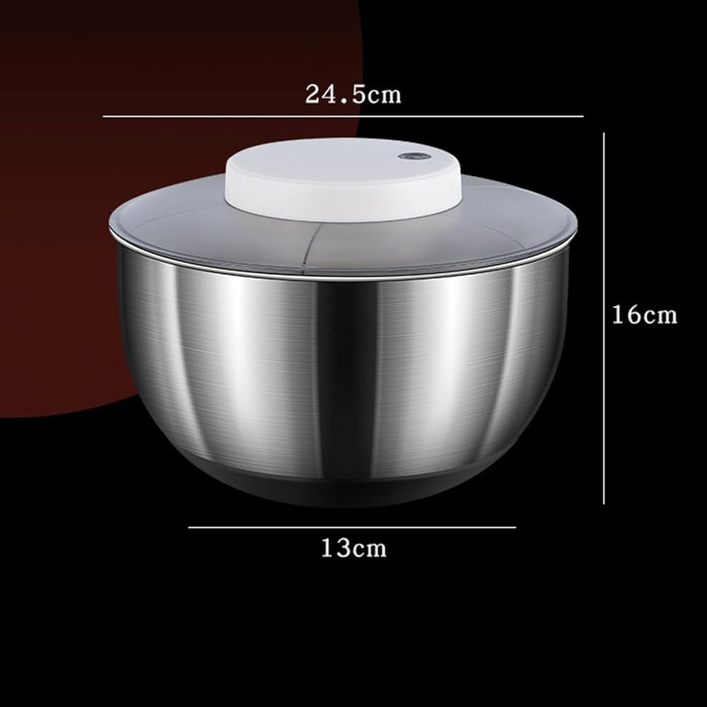 Introducing our versatile 4.5L Electric Salad Spinner & Dehydrator, designed for the modern kitchen enthusiast who values both convenience and functionality. Crafted from food-grade PS, HIPS, and stainless steel, this BPA-free appliance ensures your food remains safe and healthy. With a generous capacity of 4.5 liters, it’s perfect for washing, draining, and drying a variety of produce, from fresh lettuce to juicy fruits and crisp vegetables. One of the standout features of this electric salad spinner is its USB rechargeable functionality. Equipped with a 3.7V battery and a user-friendly USB input, you’ll appreciate the blue LED indicators that keep you informed of the charge status. With four solid lights indicating a full charge, you can easily monitor when it's time to recharge, ensuring you’re always prepared to whip up a healthy meal or snack. The compact design of our salad spinner makes it an excellent fit for small kitchens, while the non-slip base guarantees stability during use. Whether you’re preparing a fresh salad, drying herbs, or storing snacks, this multi-purpose appliance is your reliable kitchen companion. Cleaning up is a breeze, as all parts are dishwasher-safe (top rack recommended), allowing you to spend more time enjoying your meals and less time on cleanup. Elevate your kitchen experience with our 4.5L Electric Salad Spinner & Dehydrator, where convenience meets quality, and enjoy fresh, nutritious meals in no time.