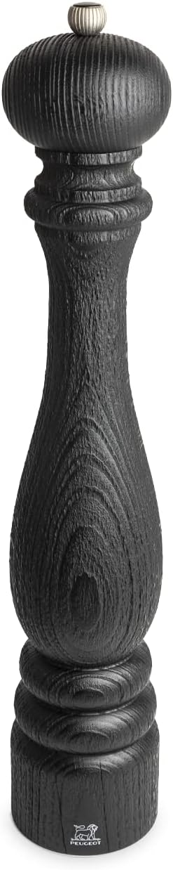 The emblematic Paris pepper mill epitomizes Peugeot's expertise in crafting metal and wood. With our commitment to protect the environment, the body of this Paris pepper mill is made from upcycled wood (that was discarded after painting due to visual imperfections). The body is then sand blasted and finished with a plant-based black stain to create its distinctive look. The Paris Nature Black pepper mill contains a world-renowned steel pepper mechanism with a lifetime warranty. The button can be used to adjust the grind setting as required.