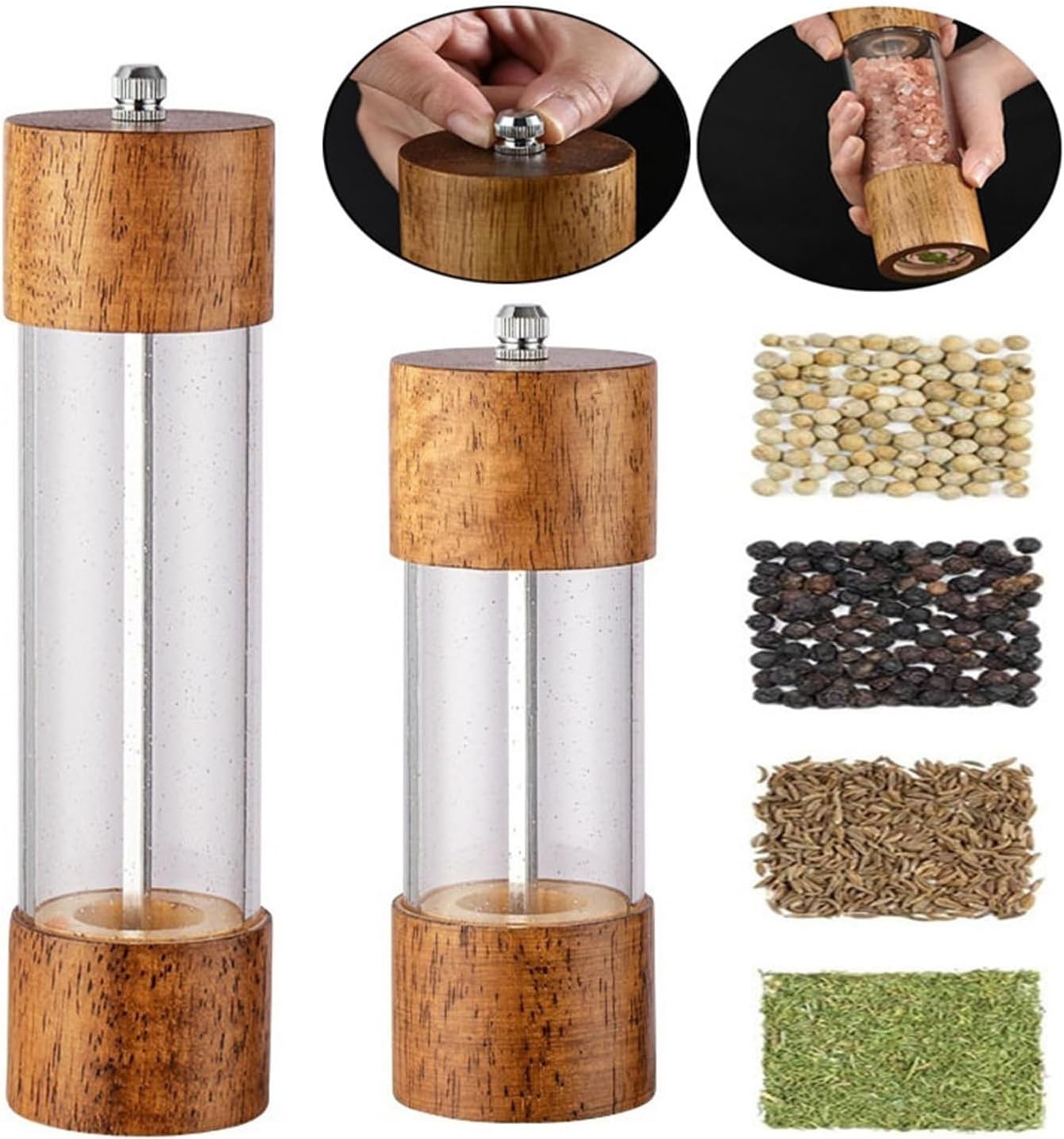 Pepper MillsMaterial : WoodFeatures1 : Manual Salt and PepperFeatures2 : Wooden Pepper Grinder with Adjustable Ceramic CoreFeatures3 : Manual Acrylic Mills with Adjustable Ceramic Grinding MechanismFeatures4 : Acrylic Transparent Pepper GrinderFeatures5 : Kitchen Salt and PepperFeatures6 : Kitchen Salt Black Pepper Grinding BottlePackage : 1 Pack