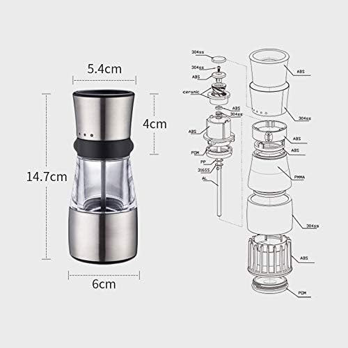 Name: Stainless steel grinderSpecification: bottom diameter 6x height 14.7cmMaterial: stainless steel + ABS+PP for food 304 stainless steel: food material, daily use with food more assured.Adjustable thickness: thickness adjustment function, the thickness of the powder is arbitrary.Application: freshly ground black and white pepper, prickly sesame, etc.Suitable for restaurants, hotels and families.Package includes: 1x pulverizerIt transforms beans and spices into a consistent texture in seconds, preserving natural oils and full-bodied flavor