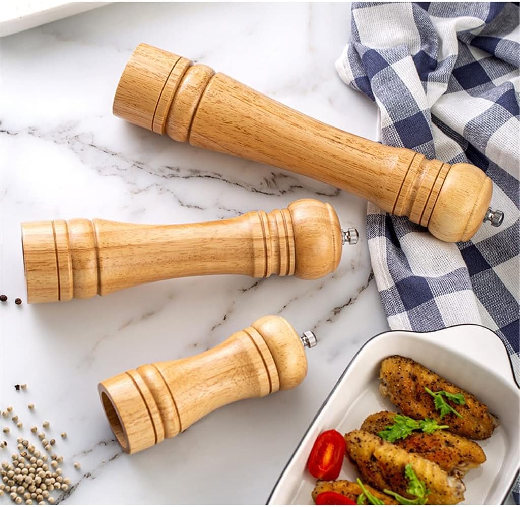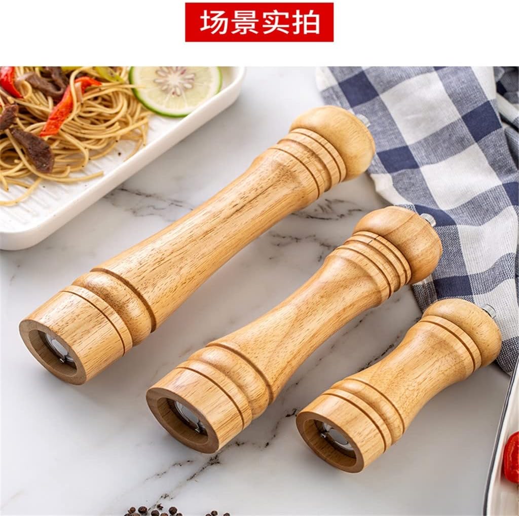 Product Advantages:1.Natural rubber wood,ceramic rotor, no plastic material, non-corrosive, you can use it safely.2.Professional quality pepper grinder is fully adjustable. Turn top nut to adjust from to coarse.3.Easily fill the pepper grinder by removing the top.Key Specifications/Special Features:material:natural rubberwoodsize:5 inch(diameter 5x14CM),8 inch (diameter 5.5x20.5CM),10 inch(diameter 5.5x25.5cm)Net weight:about 124g/192g/245gPackage Includes :3* Kitchen ToolsNotice:1.Actual color may be slightly different from the image due to different monitor and light effect2.Please allow slight deviation due to manual measurementProduct pictures:This is a perfect seasoning can set for families, cafeterias, cafes, etc,and more to meet your various purpose.