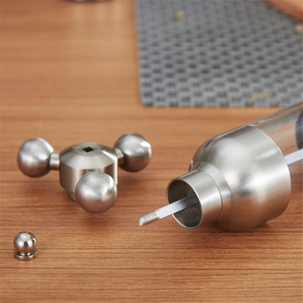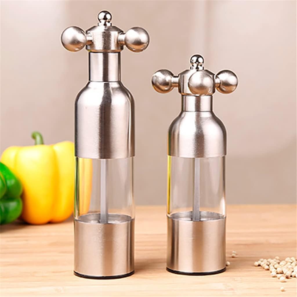 Made of stainless steel, odorless and .It can be used to grind your pepper, saving your time.Reusable and :can be used repeatedly and for long time use.Transparent pepper grinder body, easy to distinguish the spice.Faucet Valve Shape Manual Pepper Mill,Can adjust the thickness of the pepper by twisting the ball on the top.Tightening is thin.Specification:Material:Stainless SteelSize:S(4.8*17.5cm),L(4.8*21cm)Package Included:1* spice grinder If you have any questions about the product, please me, we will you within 24 hours and give you a satisfactory answer.Easy to use: hand , easy to press button. Easy to clean: Detachable parts can be cleaned easily.