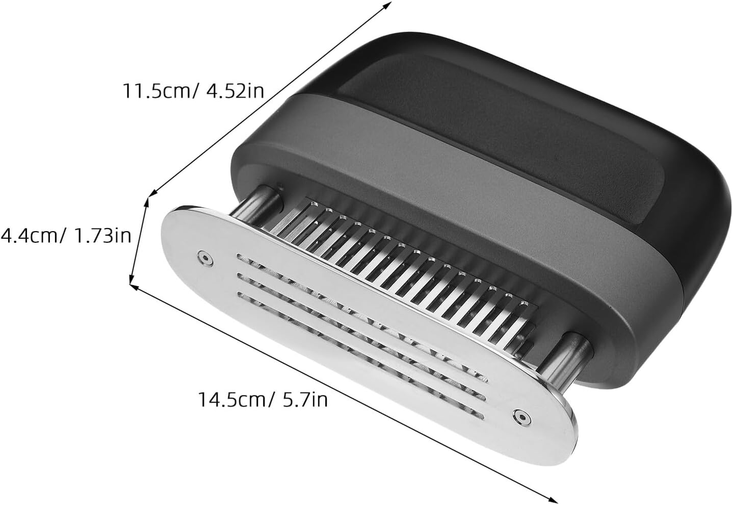 Package Include 1 x meat tenderizer Characteristics -Size:14.50X11.50X4.40cm/5.70X4.52X1.73in -Essential for every kitchen: use it as a steak tenderizer, meat mallet pounder, or meat pounder flattener chicken tenderizer -Product Info:Meat tender tools -Color:Black -Stainless steel build: this steel meat tenderizer tool features sturdy stainless steel construction, providing efficient tenderizing for steaks, chicken, and all your favorite meats meat tenderizer fork -Maximized juice retention: the tenderizer needle tool allows juices and seasoning to penetrate meat deeply stainless steel steak tenderiser -Compact & travel-friendly: this press meat tenderizer fits easily in any drawer or bag to accompany you for bbqs, outdoor events stainless steel needle meat tenderizer -Material:Stainless steel, plastic - Easy to care: with no hidden spots for residue, so your tool is always ready for your next meal preparation gadget home steak tenderizerGoods Descriptionmeat pounder Featuring stainless steel meat needles and a compact design, this steak tenderizer tool suits various kitchen tasks, from flattener for beef to needle chicken tenderiser.chicken tenderizer Achieve perfect tenderness and flavor with this heavy duty meat tenderizer