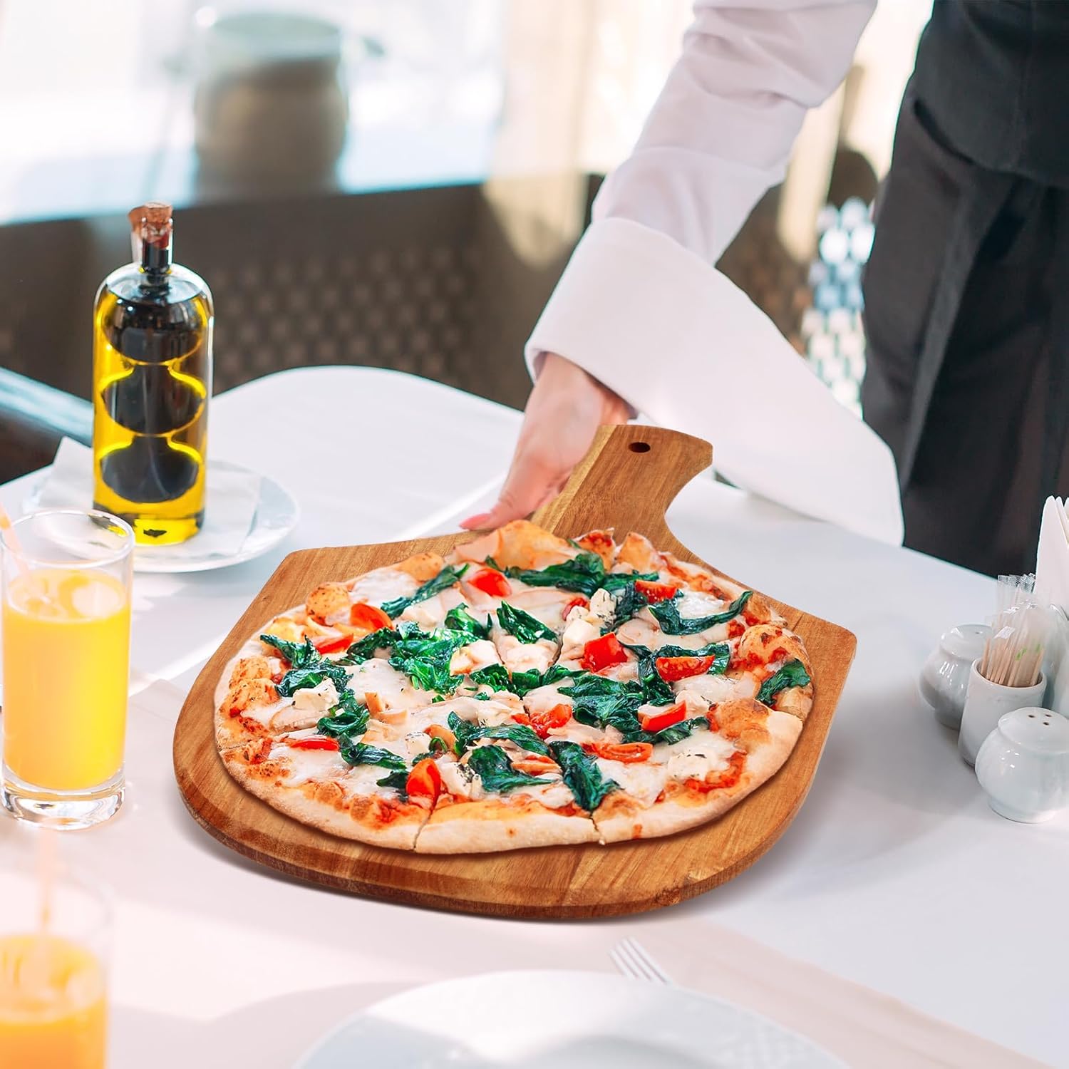 Features: The wooden pizza peels are a practical tool for moving pizza from the counter to the oven and back, rotating, and manipulating it. The pizza peel is made of quality acacia wood, which is a nice starter peel. The handle is long enough to get pizzas in and out of the oven, and a hanging hole allows it to hang on a hook for storage. The pizza board is attractive enough to double as a serving board for your pizza, a cutting board for your vegetables and fruits. This wood pizza cutting board would make a thoughtful gift for the pizza lover in your life, even if that happens to be yourself. Specifications: Material: acacia woodColor: as the pictures shownSize: about 17 x 12 inchesPackage includes: 12 x Pizza peels with handle Notes: Manual measurement, please allow slight errors on size. The color may exist a slight difference due to different screen displays.