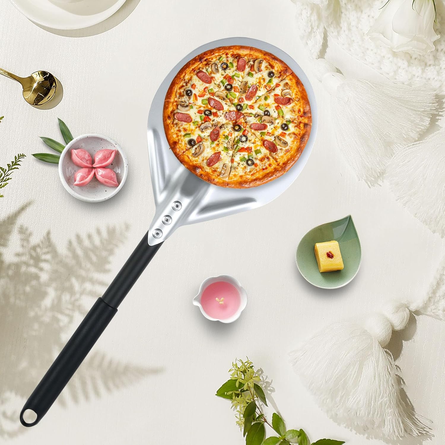 Our Pizza Turning Peel features a perforated design, ingeniously shedding excess flour to reduce burning and bitterness at the bottom, while enhancing ventilation for a crispier crust. The unique design allows steam to escape quickly, delivering the perfect pizza experience.