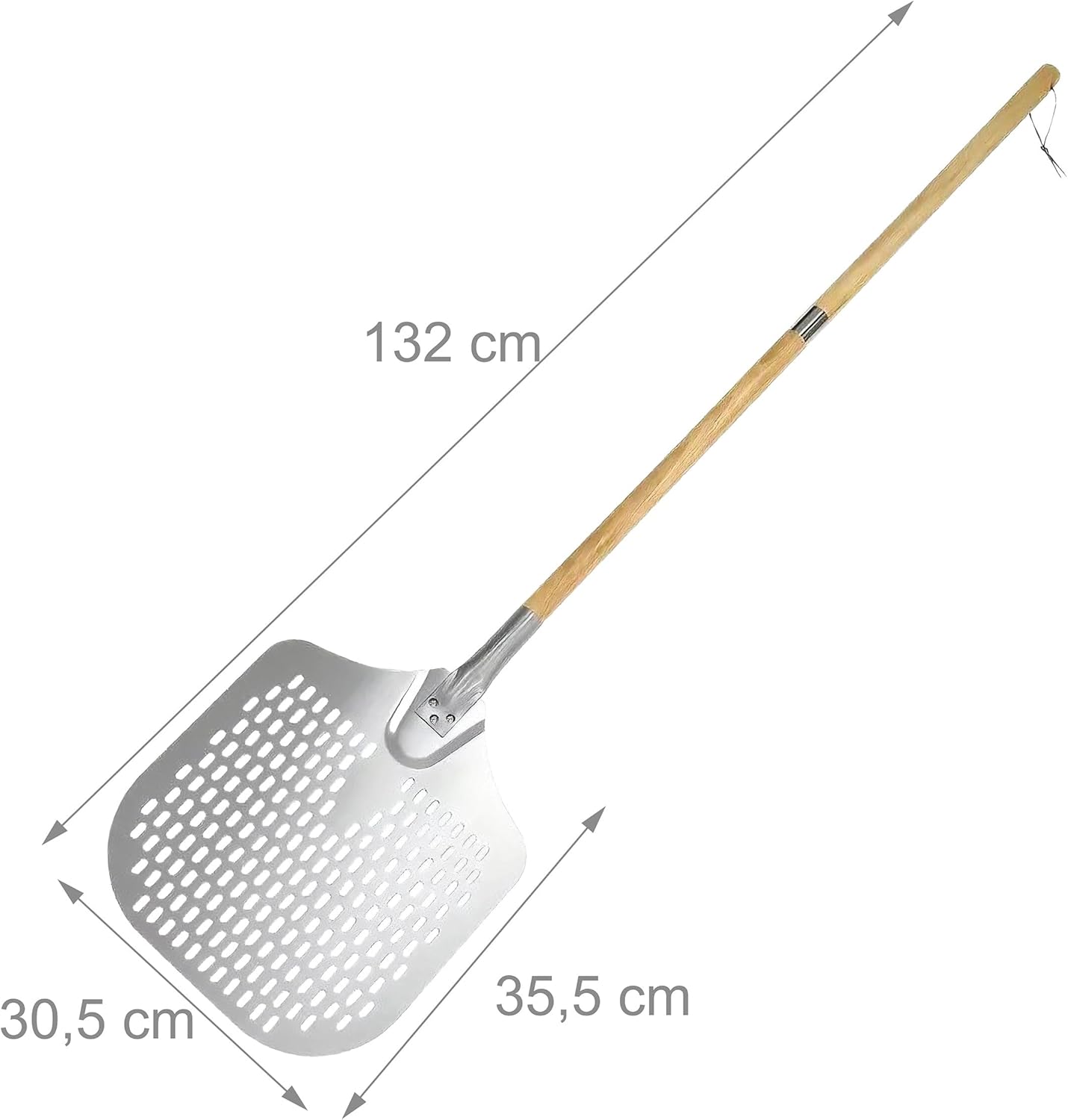 | Item Type Name | Relaxdays perforated pizza peel, detachable wooden handle, 132 cm long, aluminium & stainless steel, silver |