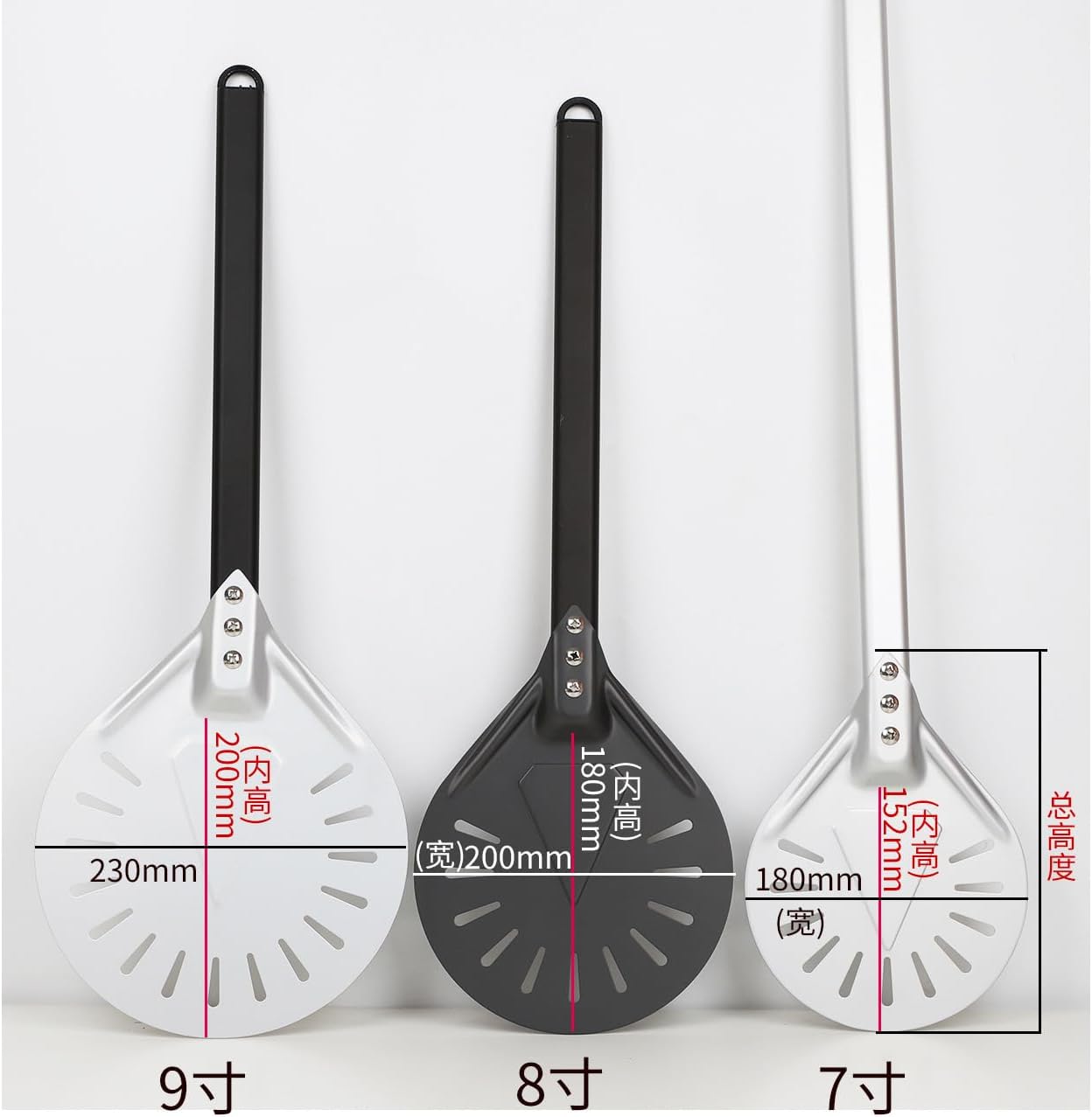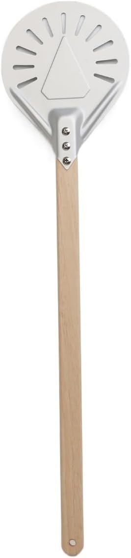 Pizza peel perforated allow you to use less cornmeal or flour when transferring the pizza from the kitchen counter to the pizza oven, be released from the bottom of the peel.Perfect for all baking, cake, biscuits, even pizza from the oven shelf. pizza paddle for making cakes, pizza, delicate breads and pastries, let it be you best kitchen helper, pizza baking tools set is especially suitable for household.Our Aluminum Pizza Peel is just the right size for your pizzas! It is big enough to hold any weight of the pizza! This pizza tray is not only large, but also sturdy, making it easier to hold any weight you throw at it.