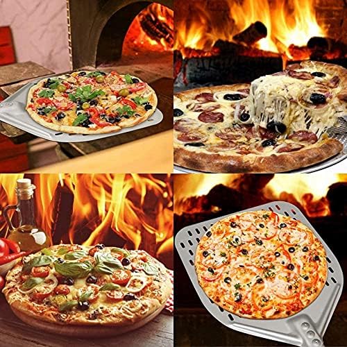 Our pizza peel is made of Aluminum alloy which is , rust free, resistant to high temperature, wear and corrosion. Plus, it is chemically stable. Thus, its nature ensures its long life, good performance and its food contact safety.The shovel is filled with many holes to further decrease the weight of the paddle. The perforated design makes extra flour drain off and reduce fiction. With light weight, thin but hard shovel blade, detachable handle, this hard anodized aluminum pizza paddle works so well to save space and tiredness when transportation or storage.Nearly non-porous surface can make you easily fly your pizza into or out of the oven. Cooperated with its slightly beveled edge, there is no way will you lose your pizzas from the first gliding. Large enough for most homemade pizzas and pizzas in the restaurant.The handle is 27 cm long, easy to maneuver. The handle riveted joints enhance its durability. Suitable for small kitchens. Great for you to keep away from heat. The rubber sleeve insulate heat from the handle and make the handle easy to grip without slipping.The pizza peel is quite easy to clean with hand. If you want to lazily it into the dishwasher, please choose a more neutral dish washing detergent.Colour:SilverMaterial:Aluminum alloy + alloySize: 35 x 35cm/40cmPackage Contents:1 x Handle(Color : random, don't accept the specified color)1 x Pizza ShovelOnly the above package content, other products are not included.Note: Light shooting and different displays may cause the color of the item in the picture a little different from the real thing. The measurement allowed error is +/- 1-3cm.