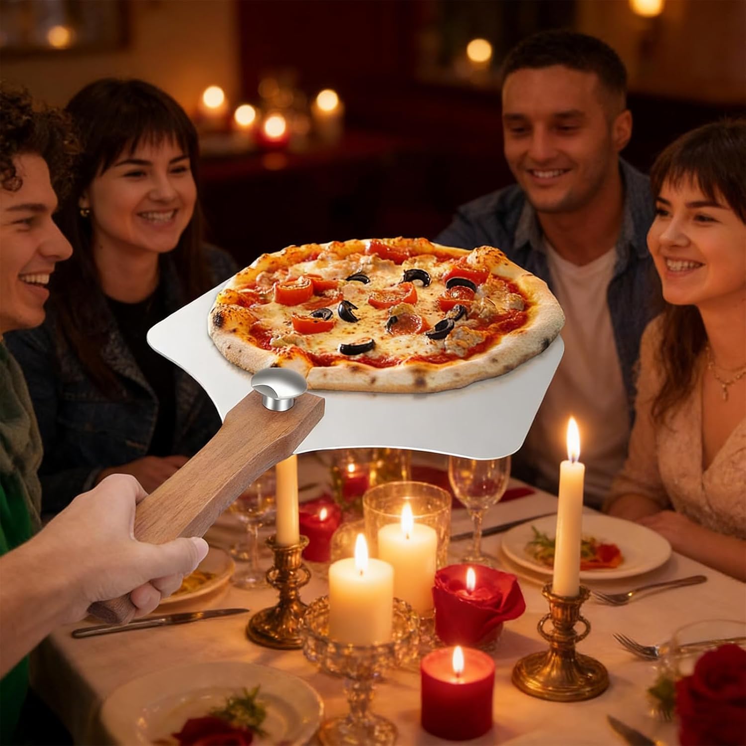 • Craft from aluminum, this pizza tool set provides consistent use for all baking needs. The foldable and lockable handle allows easy storage while offering a comfortable hold with heat protections
