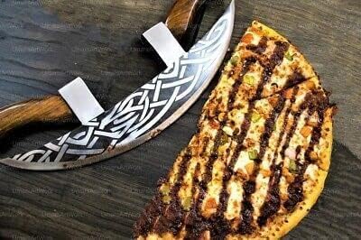 Custom Handmade Viking Pizza Cutter, Professional Pizza Cutter,Two Handed Viking Pizza Cutter,Solid Wood Two Handles,Best Kitchen Accessories, and Christmas Gift for hardworker, Silver, 14 ''