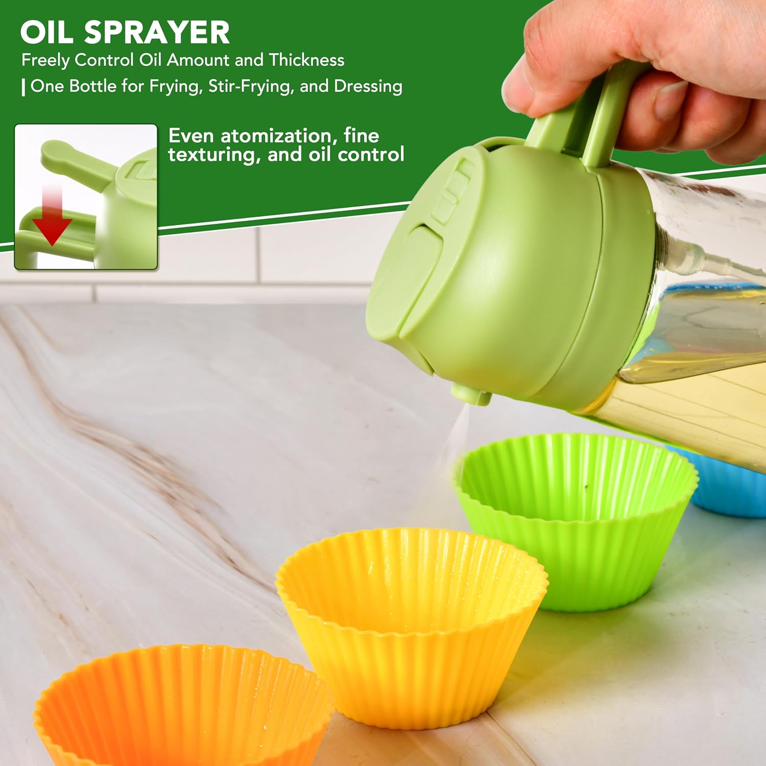 Elevate your kitchen routine with this Stainless Steel Mixing Bowl and Oil Sprayer Bundle, designed to make every step of meal prep easier. This 4-piece set combines functionality, style, and durability, giving you everything you need for efficient cooking, baking, and serving. The mixing bowl set includes three premium stainless steel bowls (4QT, 3QT, 2QT) with airtight lids and three interchangeable grater inserts for slicing, shredding, and grating directly into the bowls. Each bowl resists rust, odors, and stains while offering a sleek, modern look that complements any kitchen. The nesting design saves space, keeping your kitchen organized and clutter-free. Completing the bundle is a 2-in-1 oil sprayer and dispenser with a wide-mouth glass bottle for easy refills and a dual spray-and-pour design for precise oil control. Perfect for cooking, baking, grilling, or salad dressing, it promotes clean, efficient meal prep. Thoughtfully designed and built to last, this bundle delivers everyday convenience in one coordinated set.