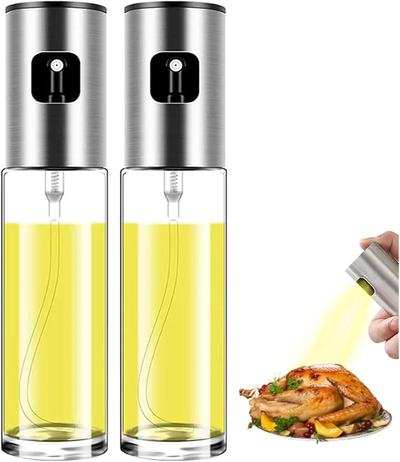 Great for Cooking Ribs, Roasts, Chickens, Turkeys, Hams and more; Perfect for slow cooking, barbecuing, camping, picnics, and other outdoor activities.Durable Material :Made from durable glass, this oil spray is designed to withstand regular use and last for many cooking sessions.Transparent dual-scale design: With a transparent design, it is easy to understand the state and amount of oil quality, and it is easy to identify seasonings (oil/vinegar/sauce). Our dual ratio design can help you master the amount of oil according to different food cooking methods.How to use: For a better spray effect, we recommend pouring water into the bottle and spraying before using the sprayer. Due to the high viscosity of the oil, the dry environment inside the sprayer will affect the spray effect. Spray test with water first, make the inside of the sprayer moist enough, then use oil, the spray effect will be better.2 sprayers , the funnel of the sprayer can help you pour oil into our olive oil sprayer. The olive oil sprayer has an oil volume display, allowing you to control less oil intake and make our bodies healthier.Wide range of uses: This reusable olive oil sprayer is a kitchen helper. Fill this olive oil sprayer with a variety of condiments such as sunflower oil, avocado oil, vinegar, wine, soy sauce, fruit juice, and more. And widely used in grilling, salad making, cooking, baking, roasting, frying, etc.Easy to use: The sprayer has a capacity of 100ml, just click the pressure pump to spray a fine mist. Since oil has a different density than water, oil may not perform as well when sprayed, we recommend that you hold the sprayer a little higher when using olive oil and keep the bottle vertical for better styling.Suitable for cleaning oven outdoor grill rack,etc.with little cleanser and strength,saving labor.
