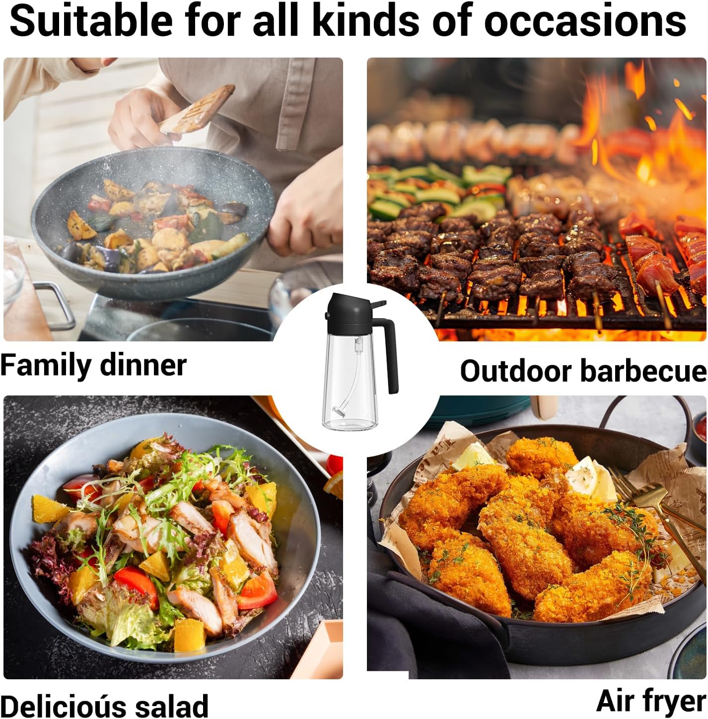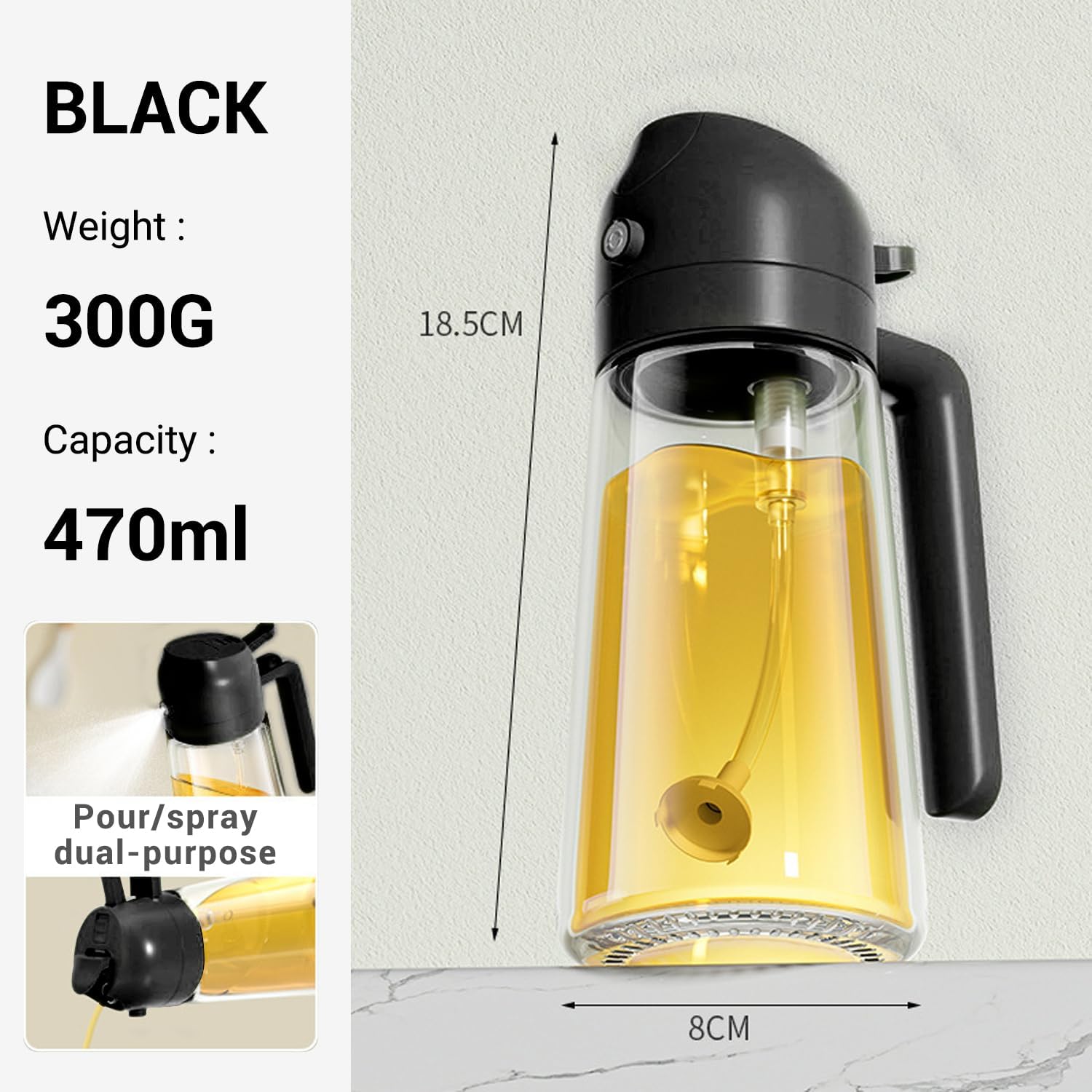 Elevate your cooking experience with our 470ml 2-in-1 Oil Dispenser and Sprayer. Combining the functionalities of an oil sprayer and dispenser, this versatile tool is perfect for frying, baking, BBQ, and more. Made from high-quality food-grade glass and stainless steel, it ensures safety and durability. The dispenser features measurement marks for precise oil usage, promoting healthier cooking. With a wide opening for easy filling and cleaning, and an ergonomic design for comfortable handling, it’s user-friendly and efficient. Its sleek, modern design makes it an elegant addition to any kitchen, suitable for oil, vinegar, soy sauce, and other liquids.
