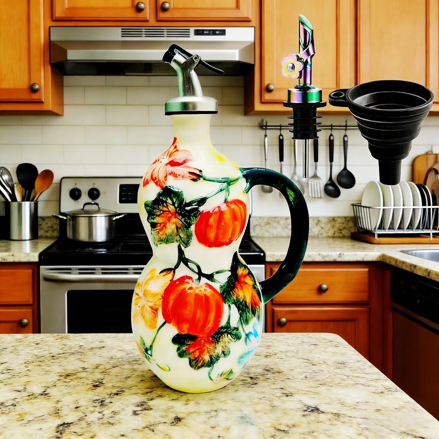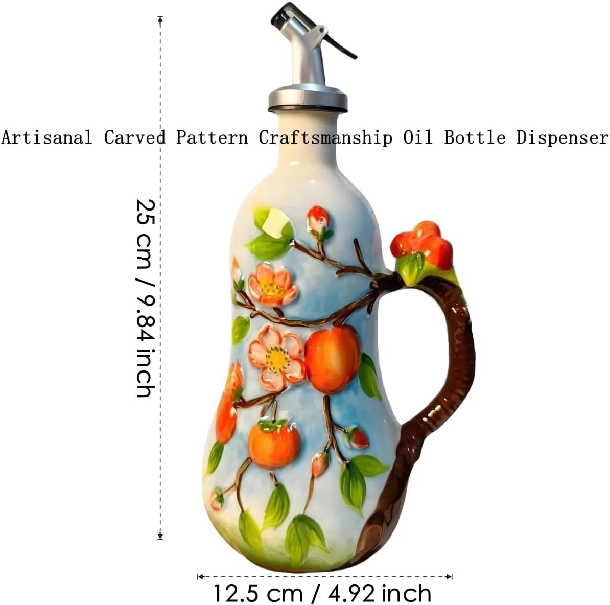 | Subject Character | 18 oz Hand-Painted Ceramic Relief Olive Oil Bottle Dispenser, with Handle Decorative Olive Oil Dispenser Bottle, for Kitchen Ceramic Oil Vinegar Bottle Seasoning Bottle with Stainless Steel Pour Spout |