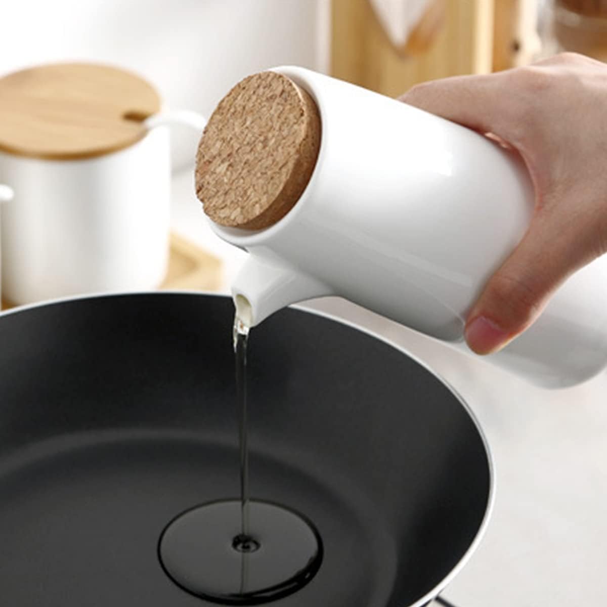 These bottles are ideal for olive oil, vinegar, soy sauce, maple syrup. They can be used at home kitchen,dining table, cafe, party or buffet. It can also be an impressive gift for many occasions. Our ceramic soy sauce dispenser bottle with cork stopper,can isolate the air better and keep the seasoning fresh.Perfect for storing and dispensing condiments, decorating, or creating a unique display. Simple and modern design, add beauty to your kitchen. Features: Large Bottle: 400ml/16 x 7.8 cm,6.3 x 3.1inch Small Bottle: 250ml/11 x 7.8 cm,4.3 x 3.1inch Bamboo Tray: 29 x 9.5cm/11.4 x 3.8inch 1.Made of high-quality ceramic, with cork stopper 2.Suitable for use: Cooking oils, Olive Oil, Dressings, Vinegars, Soy Sauce, etc. Package included: 1pcs x Big soy sauce dispenser bottle 2pcs x Small soy sauce dispenser bottle 1pcs x Bamboo tray