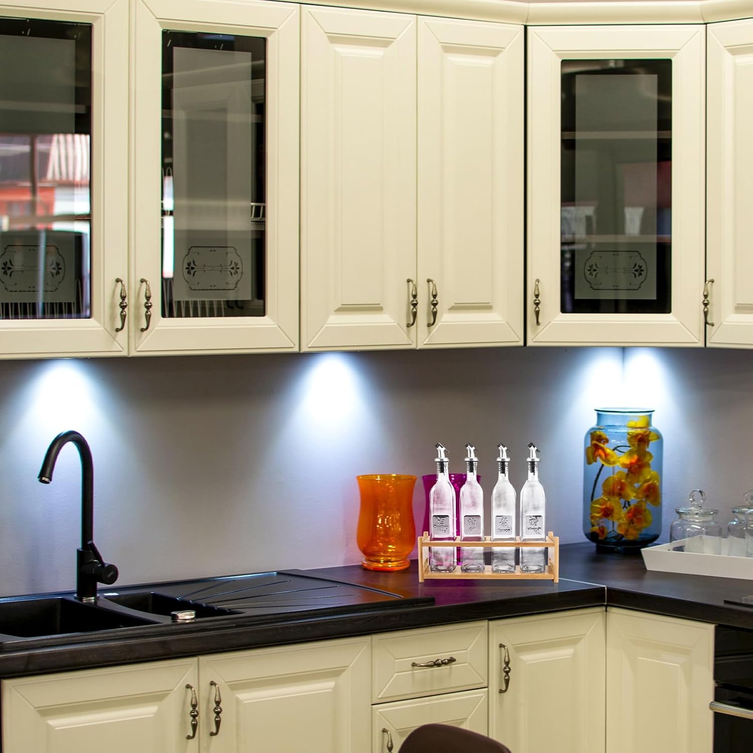 Package List 1 x holder 4 x bottle Features - Size: About 33.00X32.00X8.00cm/12.97X12.58X3.14inch. -Product Info:Seasoning bottling - Color: Assorted Color. - Material: Wood, metal, glass, plastic. - With a storage rack, it can help keep your oil bottle in order oil storage container for kitchen. - for home, restaurants, kitchen and more household oil storage bottle. - Made of material, very practical and safe for use. - With creative design, dust and and keeping cooking oil dispenser container. - workmanship, delicate touch. Suitable size, comfortable grip.Goods Descriptionoil dispensing bottle Made of material, this oil bottle and storage rack is in and safe to use.sauce container It has lid and anti- to leaks.oil container It matches well with different styles of kitchen decoration.household oil storage bottle Perfect kitchen utensil for your convenient life