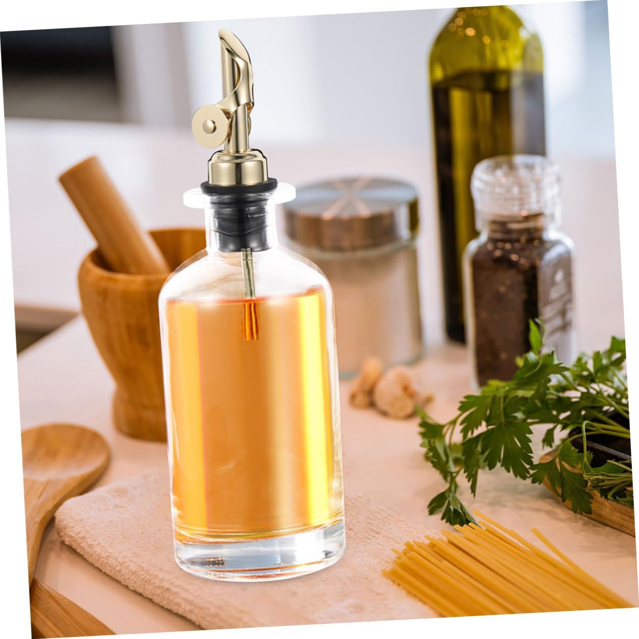 Package List 2 x Oil Bottles Characteristics -Material:Glass,Stainless Steel - Size: 22.80X8.40X8.40cm/8.96X3.30X3.30in -Product Info:Automatic oil-opening and closing pot -Capacity: 500ml cooking oil glass bottle - Color: Golden - Transparent bottle design, can clearly observe the amount. A nice helper for your kitchen oil bottles for kitchen. - Excellent for olive oil, salad dressings, cooking wines, syrups, soy sauce, vinegar, milk, juice, water and other liquid condiments glass dispenser. - Fine workmanship, smooth grinding, the oil bottle is easy to use, sealed and practical glass oil bottles for kitchen. - The oil bottle is a good helper for cooking in restaurants and kitchens. Smooth sauce bottle, smooth and healthy material, strong and . - This oil bottle is suitable for storing all kinds of liquid seasoning, easy and convenient to make delicious food kitchen oil dispenser.Goods Descriptionoil dispenser kitchen It can hold the olive oil, soy sauce, vinegar, oil and other sauce in the kitchen.vinegar oil containers Are you looking for a creative and convenient soy sauce bottle for your daily cooking use? Our production can meet all your requirements with and reliable materials for use.oil vinegar bottle Designed with lid, making your cooking process more convenient