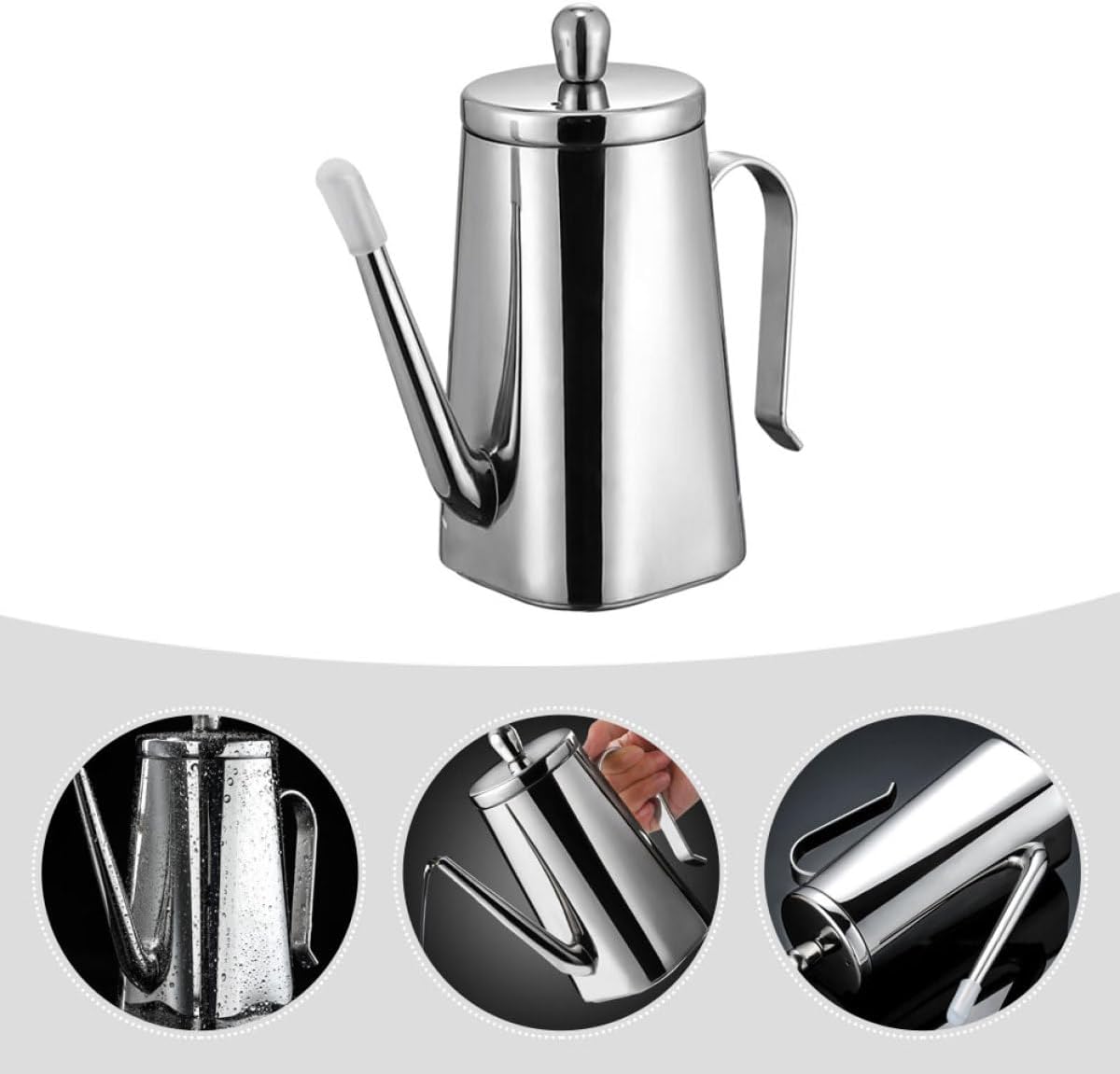 Package List 1 x oil bottle Characteristics -Material: Stainless steel -Product Info:Stainless steel oil pot -Color: Silver - This bottle is suitable for oil, vinegar, balsamic vinegar, soy sauce, etc oil holder for kitchen. - It comes with a lid, so it is very convenient, and you don't have to worry about the dust stainless steel oil bottle. - The oil dispenser bottle is made of material, can be used for a long term. - It has a simple appearance and is also very practical and convenient for cooking use oil dispensing bottle. - Oil bottle can be used at home, bars, coffee shops, hotels, restaurants, and parties kitchen stainless steel oil bottle.Goods Informationoil storage container This oil bottle is made of stainless steel material, and practical, it is convenient to pour oil with one hand, and it is not easy to leak oil.oil storage dispenser bottle High temperature and corrosion resistance, , useful and convenient.stainless steel oil storage pot The long spout makes it easy to pour oil