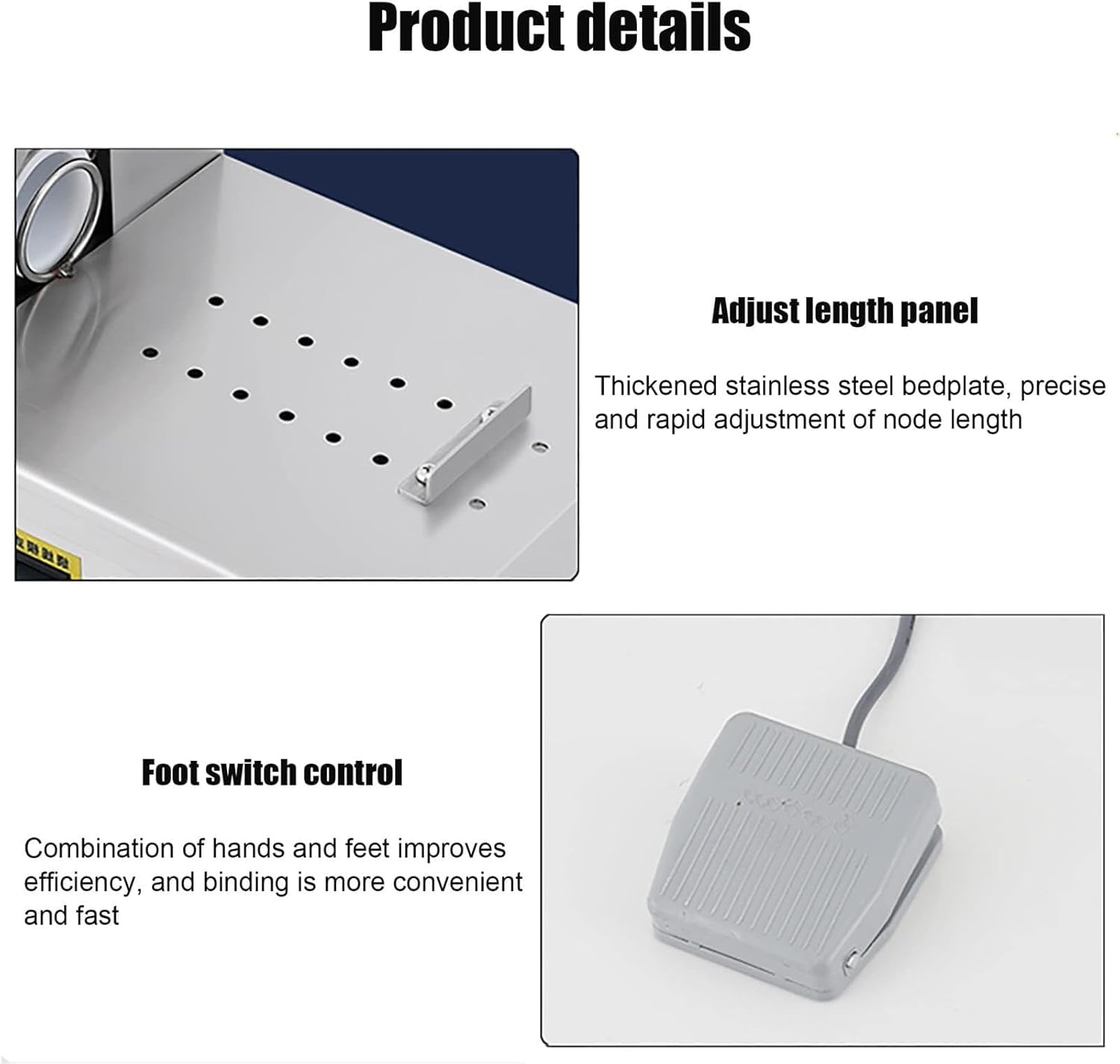 - Improve work efficiency: quickly and accurately bundle sausages, greatly improving production efficiency- Easy to use: Just put the sausage into the machine and press the button to complete the binding- Fasten firmly: High-quality strapping can fasten the sausages firmly and prevent them from falling apart or loosening- Save time and effort: Compared with manual banding, the electric sausage banding machine can save a lot of manual operations- Strong adjustability: Adjustable bundling length can be adjusted according to the size and hardness of different sausages- Improve product quality: Ensure that each sausage is tightly tied to avoid product quality problems caused by weak tie-upsMaterial: 304 food grade stainless steelPower: 200WPackage size: 46*25*29cmNet weight: 7KGGross weight: 8.5KGApplicable To Sausage Processing Plant, Meat Processing Plant, Fast Food Shop, Dining Room, Hotel, FamilyDiameter 4.5cm/1.7inch, Adjustable sausage length 3-30cm/1.2-11.8inchThe electric sausage banding machine has the advantages of improving work efficiency, being simple and easy to use, firm fastening, saving time and effort, strong adjustability, saving materials and improving product quality.