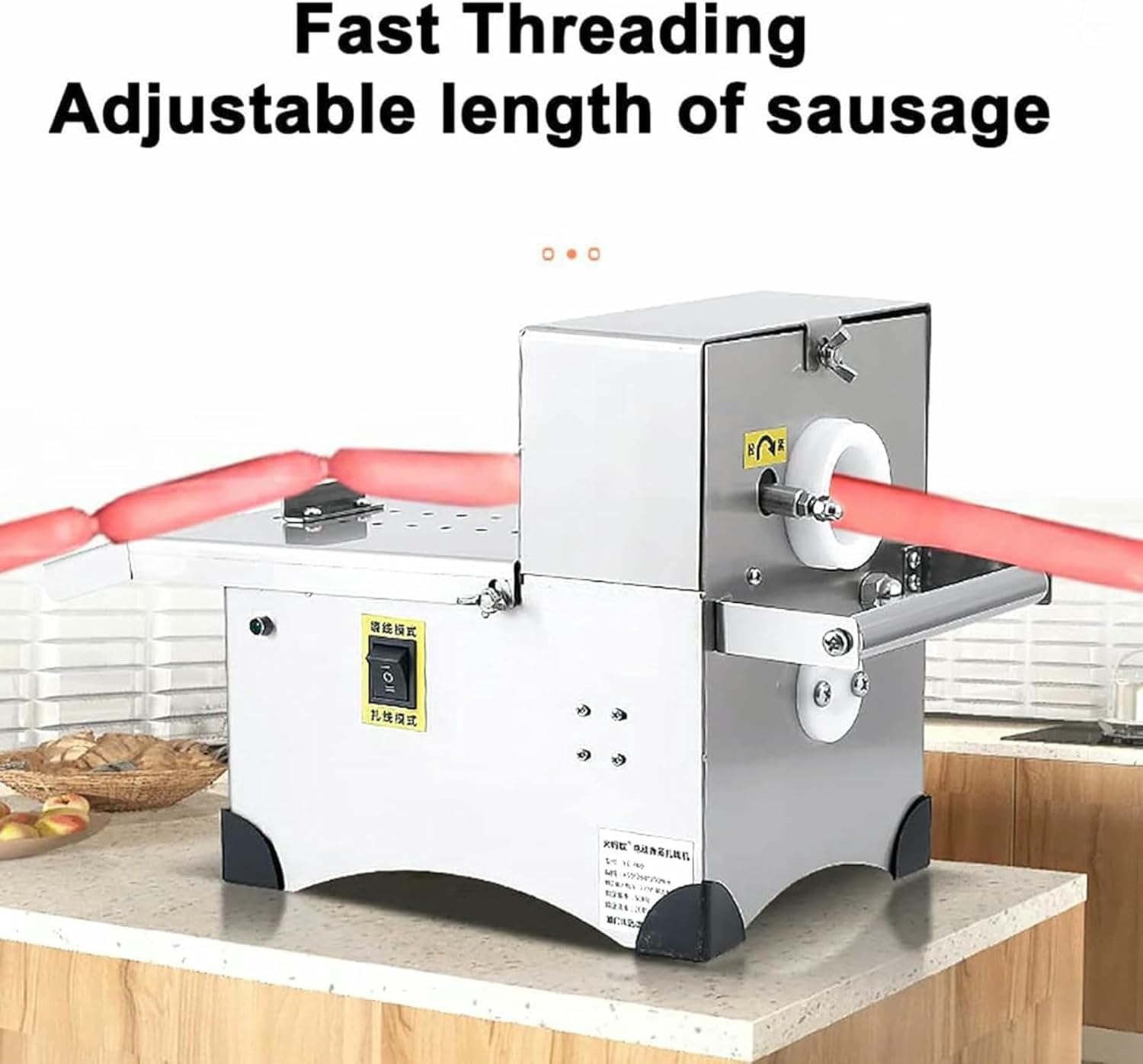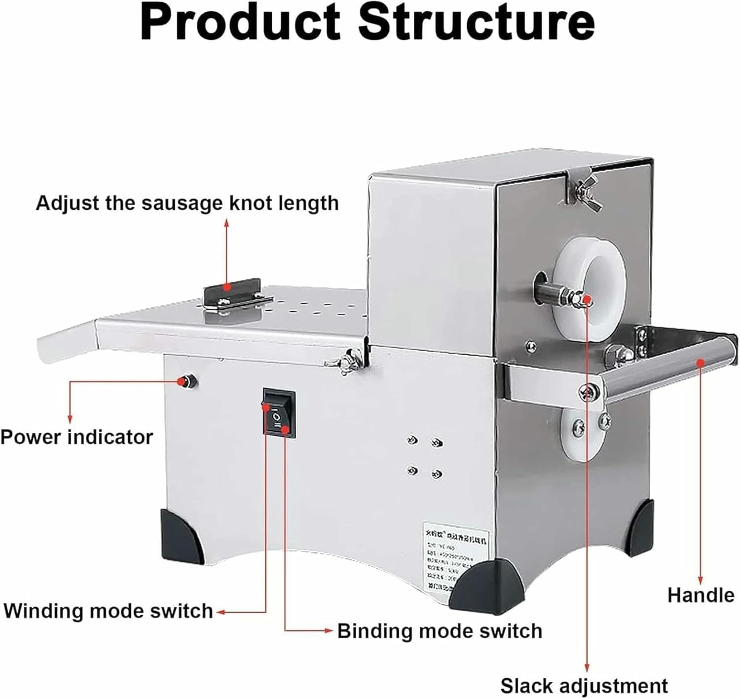 Specs:Material: Stainless steel 304 food gradeInput voltage: 220 V 50 HzOutput voltage: 24 VPower: 200 wPackage Included:Sausage knots machinePedal switch