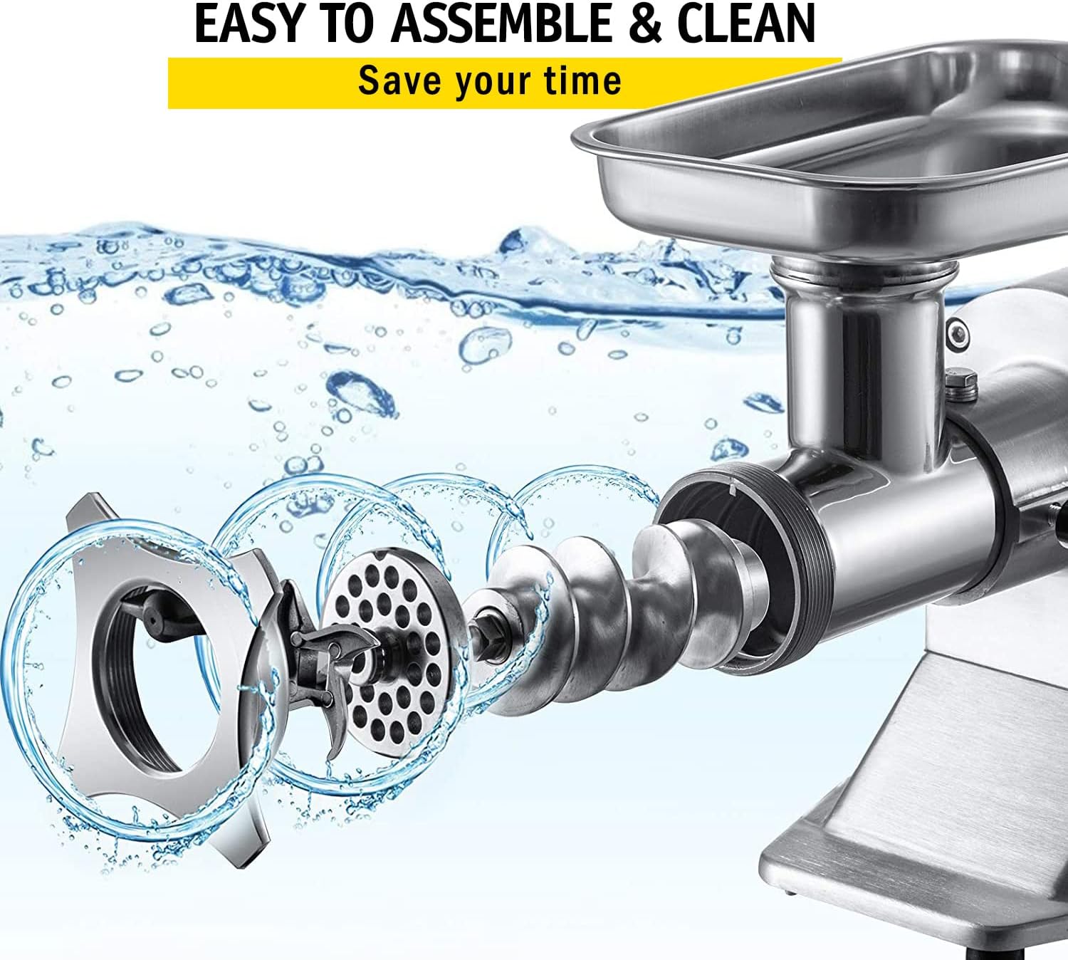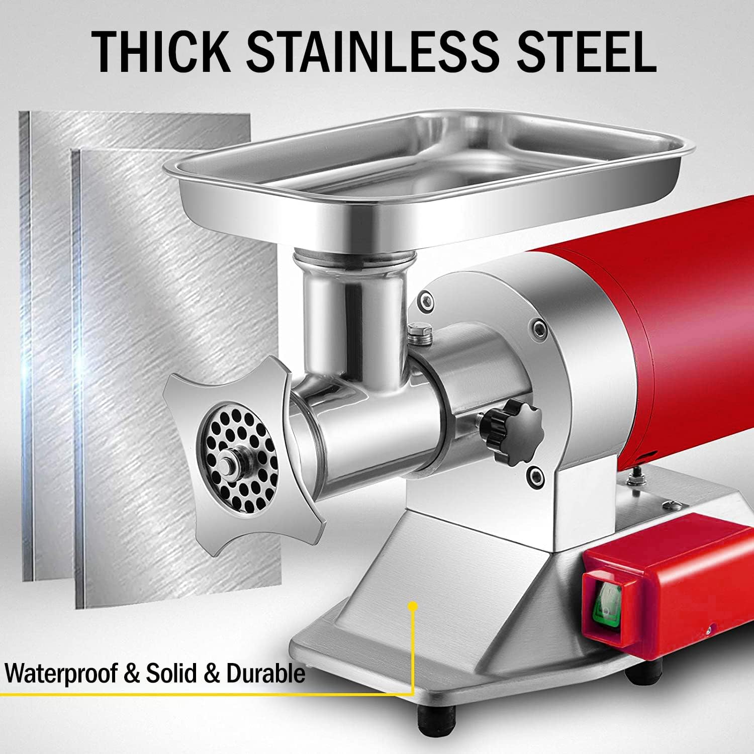 Thanks for Shopping in our Amazon Store, we are a professional business company, we YUEWO have engaged in online business for about 8 years, we always providing the best products and the best service! This Electric Meat Grinder can be applied in various situations, kitchen, restaurant, home and commercial use, and more. We have test everything when we sending the package out. Product Specifications: Rated voltage: 220V Rated power: 1500W Rated frequency: 50Hz Waterproof level: IPX1 Processing capacity: 300KG / 661Lbs Rotating speed: 180R/Min Total Weight: 20KG / 44Lbs Size: 54*23*37.5 cm / 21.3*9*14.8 inch Package Content: 1 x Meat Grinder 1 x Meat Pusher 1 x Meat Tray 2 x Grinding Plate(6 mm / 8 mm) 1 x Pack of Accessories