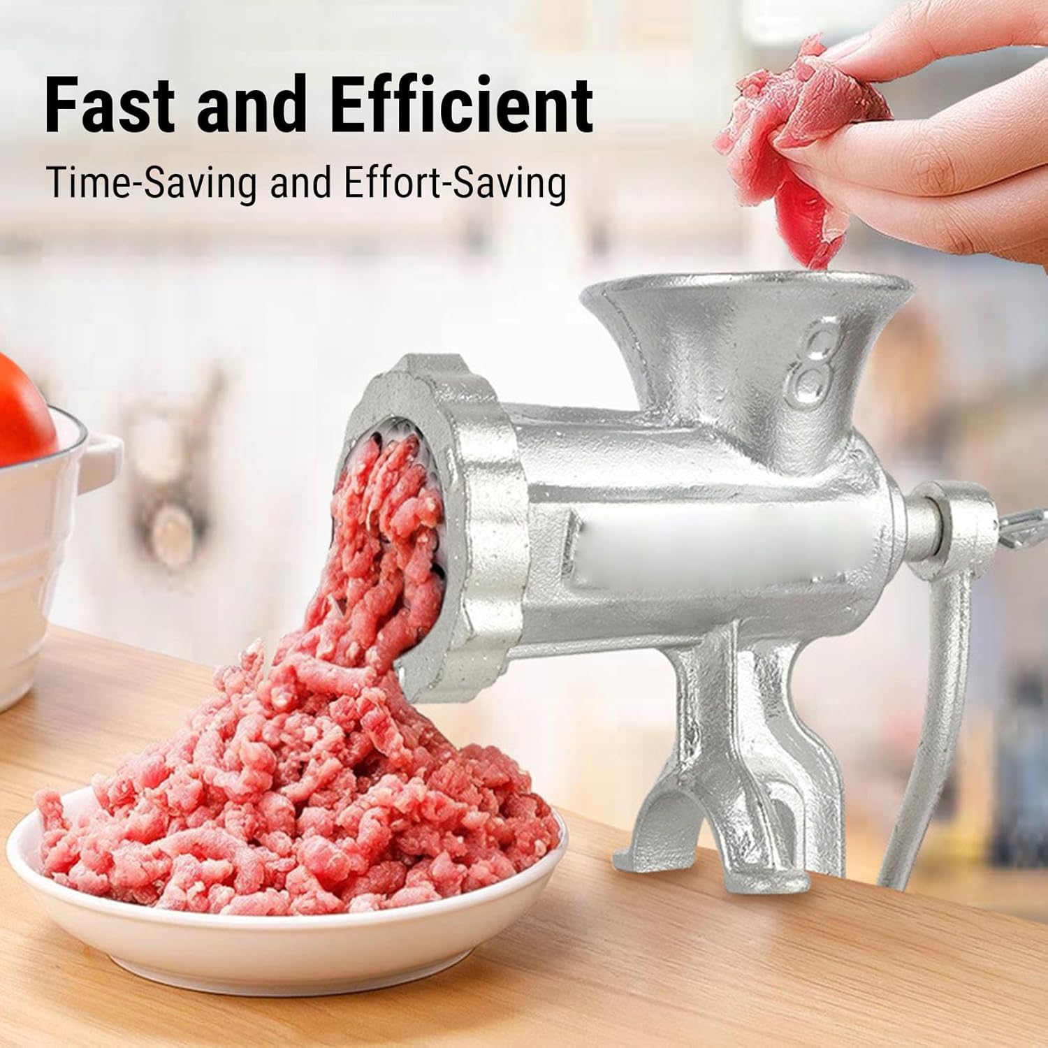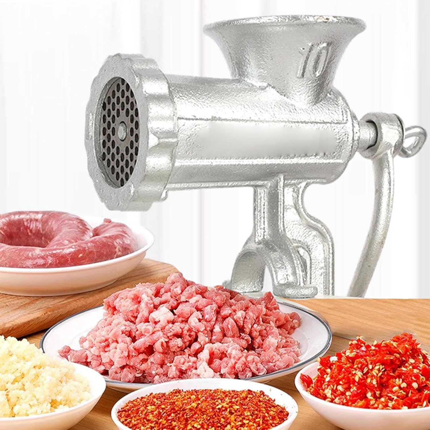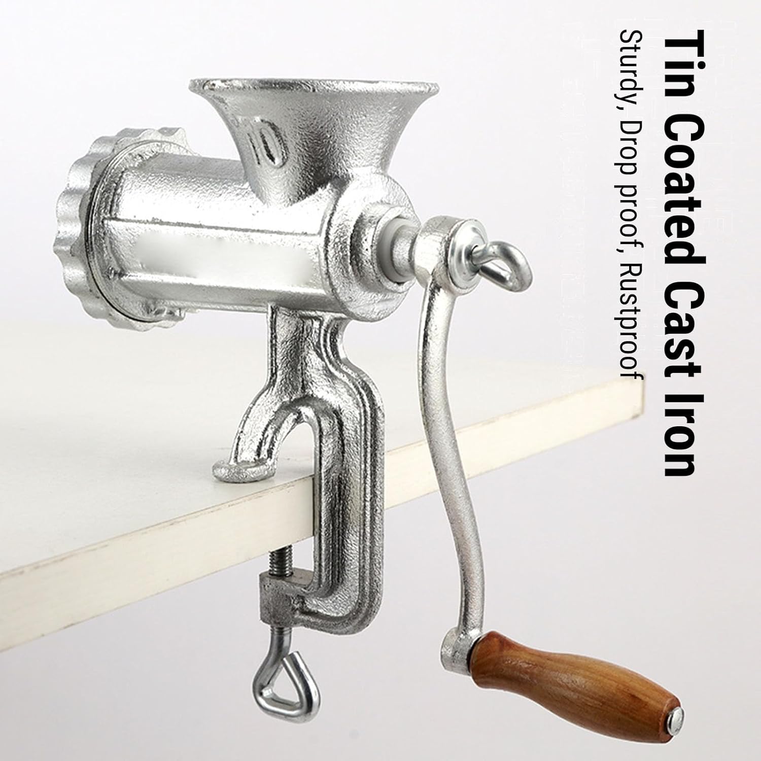 Spec: Item Type: Manual Meat Grinder Material: Tin Coated Cast Iron, Pine Handle Weight: Approx. 2160.00g / 76.19oz Feed Inlet Size: Approx. 9.4x8cm / 3.7x3.1in PackageList: 1 x Manual Meat Grinder 1 x Handle 1 x Brush 7 x Accessories