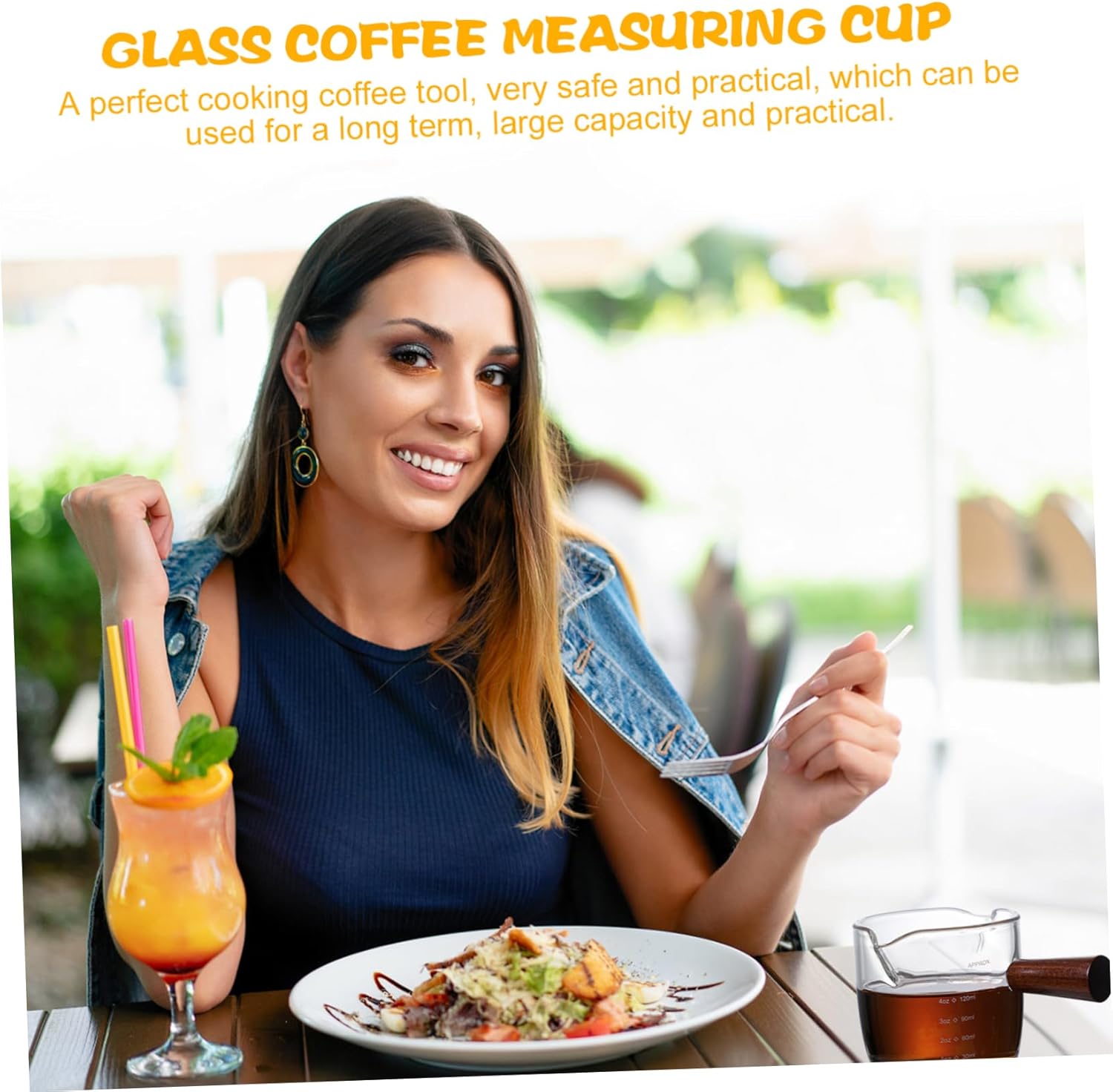 Package Include 2 x Cup Characteristics -Size: About 11.50X9.30X6.70cm/4.52X3.65X2 seasoning dish. -Capacity: 150ml Milk Cup -Color: As Shown soy sauce dishes -Material: Glass and Wood espresso triple pitcher - Selecting safe and premium glass material, this measuring cup is good for long time-serving espresso cup. - Smooth cup body, transparent cup body, liquid clearly visible Glass Creamer serving Pitcher. - It can be used to measure and store liquid for a bar, home, and much more milk pitcher. - This measuring cup has a wooden handle design, which is easy to grip ceramic coffee cups. - Easy-to-read markings that contrast nicely for easier and accurate measuring Double Spout Cup.Goods Descriptioncoffee measuring cup Multi-purpose, can measure a variety of liquids, such as water, oil, etc.Kitchen Supply The design of the double V shaped cup mouths make it easier to pour and take.espresso triple pitcher The handle adopts ergonomic design, it is comfortable to hold.Measuring Glass Cup Manufactured with glass and wood material, which is durable and lightweight