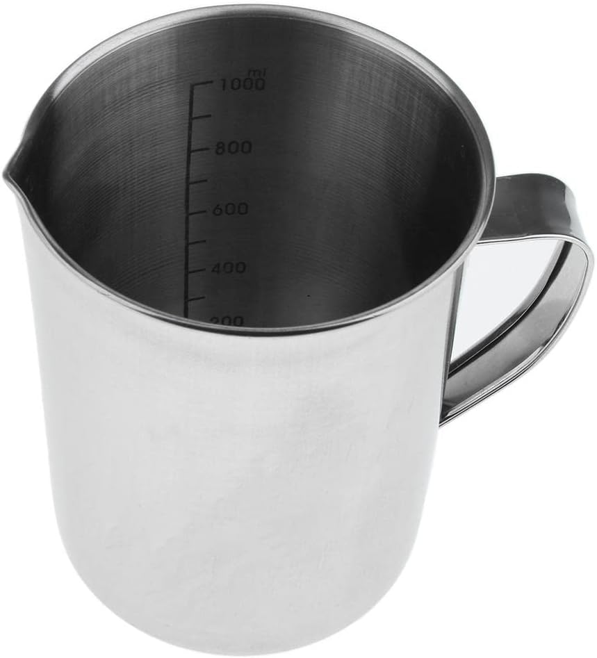 Description:- Made of stainless steel, anti-, well-polished & durableUnique volume scale design you can watch scale from the inner side of pitcher convenientlyMultifunction can be used as milk pitcher, measuring cup, or cooperate with milk frother.- Special duck-billed design can the pour of .- Widely applied in milk tea shop, restaurant, kitchen, laboratory.Specification:- Material: 304 Stainless Steel- Capacity: Approx. 1000ml / 35.2oz; 500ml/17.6oz- 1000ML Size: Approx. 13.5x10cm/5.3x3.9inch- 500ML Size: Approx. 10.5x10cm/4.13x3.9inchPackage Includes:1 Piece Measuring Cup