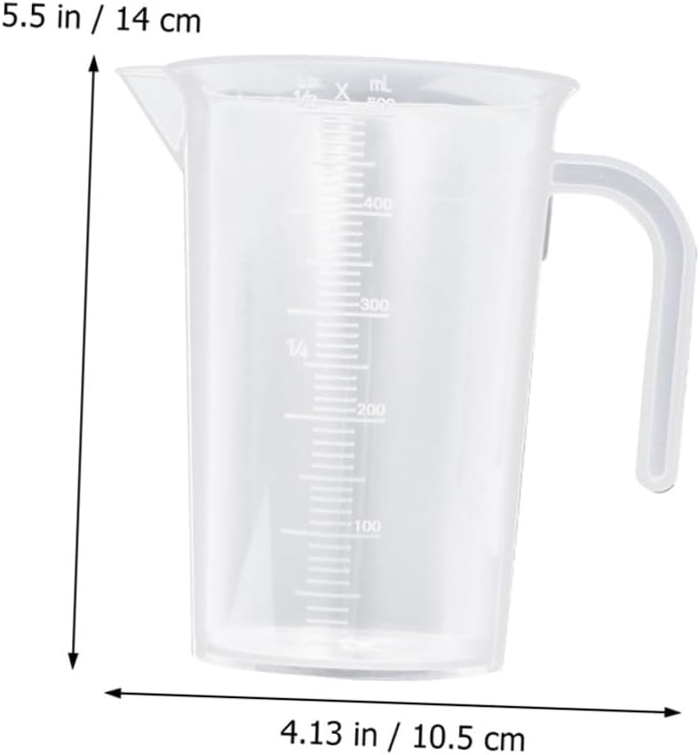 Package Include 5 x measuring cup Features - Material: PP. - Color: As Shown. -Product Info:Measuring cup - Size: About 14.00X10.50X10.50cm/5.50X4.13X4.13inch. - The measuring cup has a handle design which is easy to grip measuring cup plastic. - Perfect for cooking and baking needs, such as, measuring liquid, solid ingredients and more kitchen jug. - With easy-to-read markings that contrast nicely for easier and accurate measuring baking measuring cups. - Smooth cup body, transparent cup body, liquid clearly visible measure jug. - Select safe and premium PP material, V-shaped leak orifice design, leakage, having .Goods Descriptionmeasure jug Perfect for baking, coffee, milk tea, beverage and more.measuring jug with lid This measuring jug set, made of material, heat and cold resistance, not easy to deform, is practical and for use.measuring jug cup Easy to read measurement.kitchen cups It gives your hands a good grip when you pour