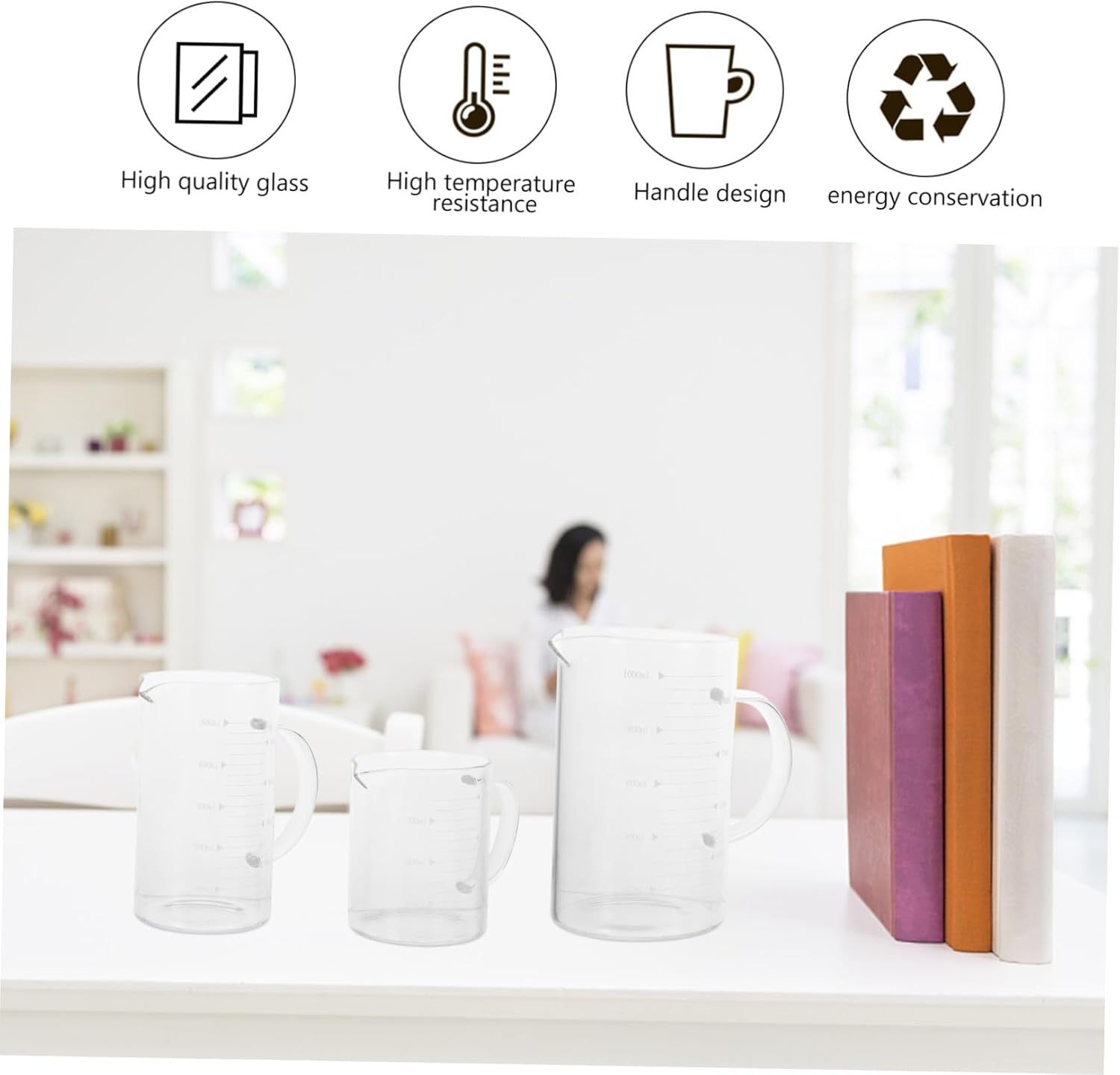 Package Include 3 x Scale Measuring Cups Features - Material: Glass measuring cups with scale. - Size: 17.00X11.50X4.00 cm/6.69X4.53X1.57 inch. (1000ml) graduated beakers - Size: 10.00X8.50X3.00 cm/ 3.93X3.35X1.18 inch. (350ml) measuring tools - Size: 14.00X9.00X3.50 cm/ 5.51X3.54X1.38 inch. (500ml) measure cup - Transparent design makes you see the liquid inside easily, giving of convenience to you clear measuring cup. - Made of premium glass material, light weight, and to use scale measuring cup. - ColorTransparent glass measuring cups - With easy-to-read scale that contrast nicely for easier and accurate measuring measuring cups. - It is a measuring device for laboratory when doing experiments liquid measuring cups. - Perfect for cooking and baking needs, such as, measuring liquid and more transparent glass beaker.Goods Descriptionmeasuring cup Besides, you can easy to clean it, suitable for baking shop, and home use, etc.measuring cups It is convenient to measure with scale lines.measuring tools This item is a transparent measuring cup which are made of glass material.measuring cups with scale Lightweight and