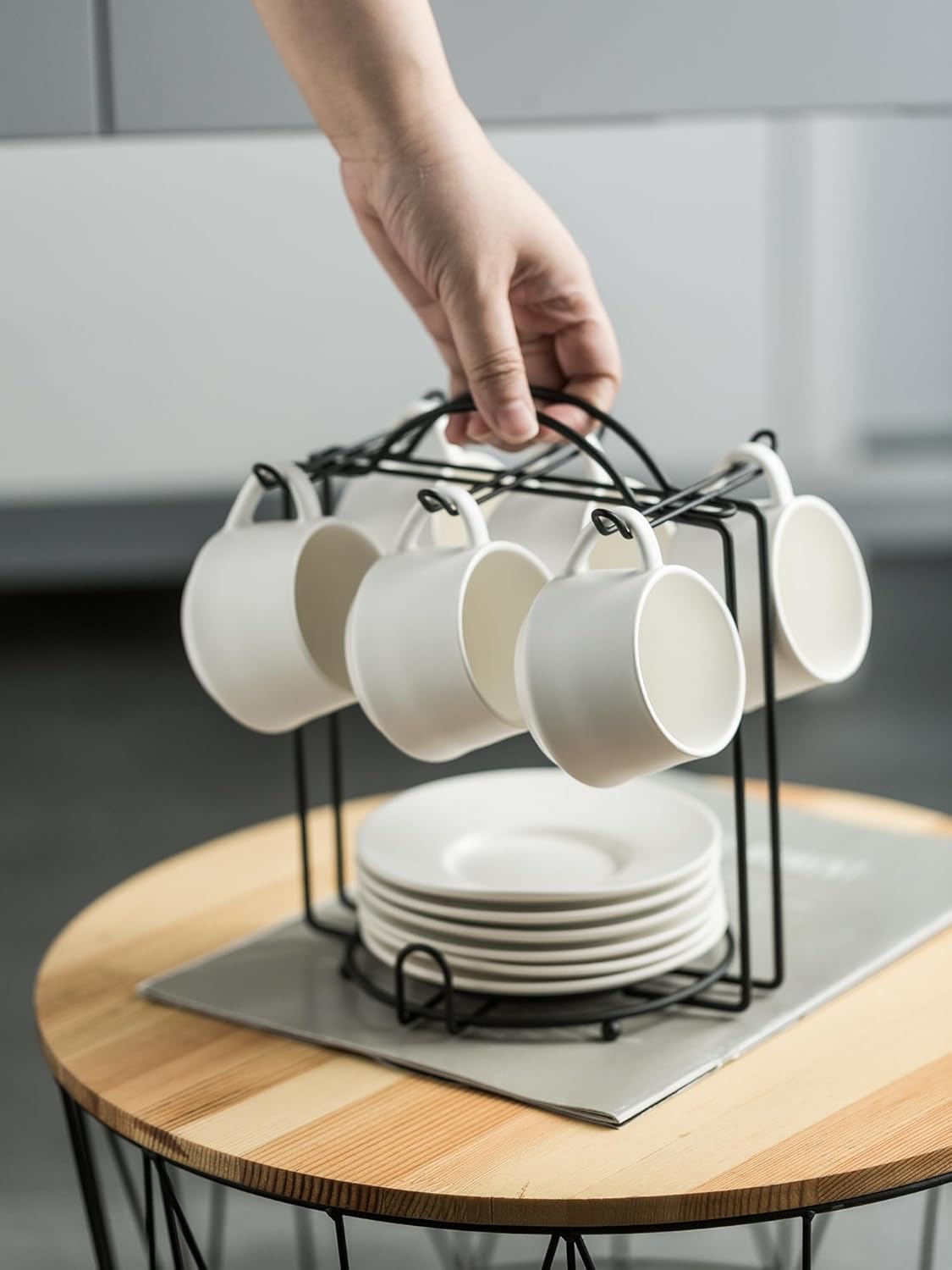 YHOJOY Double Spouts Measuring Cups, Ceramic Espresso Cup with Handle