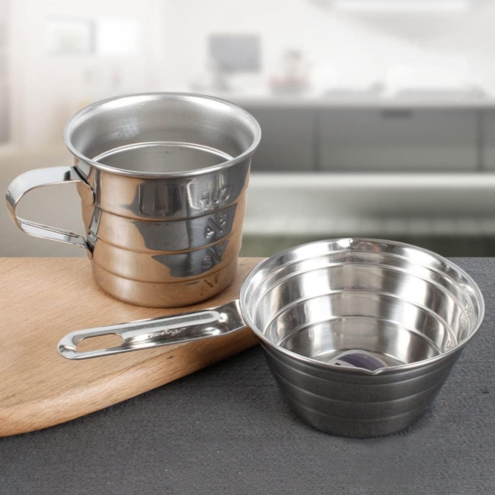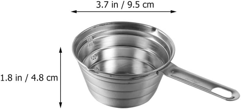 DescriptionThis item is a measuring cup for multi use, which is made of durable stainless steel material and printed with clear scales. The cup is designed conveniently to measure and read the graduations with scale lines, so you can easily measure how much is in it.Features- Color: Silver- Material: Stainless Steel- Size: 9.50X5.50X4.80cm/ 3.73X2.16X1.89in- Owning the wear and resistance ability, very durable to use.- The size is compact and the weight is light, which is not taking up any space.- You can make an amazing milk or milk shake with this measuring cup.- With the scale design, graceful arc, fluid flow more fluid, do not touch the cup.- With the handle design, you can grip this measuring cup with ease and convenience.Package Including1 x Measuring Cup