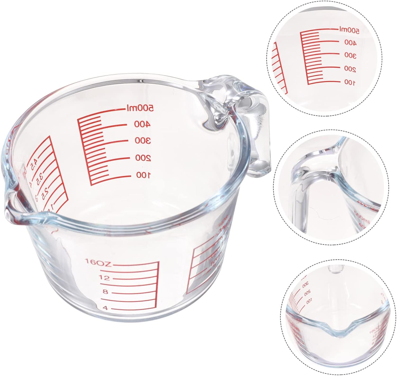 Package List 1 x Measuring Cup Features -Color:As shown milk coffee measuring cup -Volume: 500 ml milk measuring cup. -Material:Glass bakery supplies -Size:12.90X12.90X9.00cm/5.07X5.07X3 graduated cup. -The scale is clearly, you can be according to scale to control the amount that you need large capacity cup. -With a convenient insulated handle, and this cup is convenient and easy to operate household milk glass. -This is a glass measuring cup, made out from premium glass, thicken and durable coffee cup with scale. -This cup with scale is suitable for measuring milk, honey, vinegar, sauce, or other liquid thickened glass cup. -Easy to clean, can be used over and over again, bring much convenience to you glass drinkware.Goods Descriptionmilk measuring cup Easy to clean, just use water to wash it regularly.measuring glass beaker Perfect for different kinds of beverages both, like water, tea, coffee, milk, juice, etc.espresso measuring glass Made of premium glass material for durable to use.oil measuring cup The cup with scale can be a good tool in your , bring much convenience to you