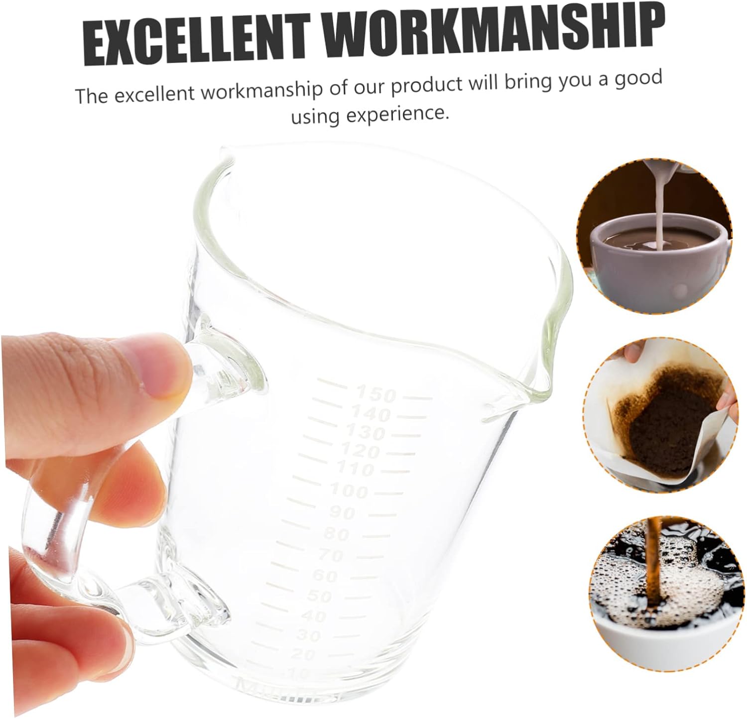 Package Include 1 x Glass Espresso CupCharacteristics -Size: 8.50X6.50X9.00cm;/3.34X2.55X3 laboratory measuring cups.- The excellent workmanship of our product will bring you a good using experience cappuccino jug.-Color:Transparent espresso storage cup- Lightweight design, it is very easy to use and carry, it can fully meet your needs espresso shot cups.- A nice coffee glass for the coffee bar, you can use it to do the latte art for the coffee milk cup with scale.-Material:Glass double mouth milk cup- Smooth and not easy to break, and store, which is not taking up space scale measure cup.- Manufactured with premium and high-class material, durable and practical to use glass creamer.Goods Informationclear espresso mugs The espresso cup is made of high-grade glass material, sturdy and practical, which can be for a time.coffee measuring cup Fine polishing ensures the smooth surface without burrs.Double Shot Glass Double spout design and multi-function, which is coffee, milk, cream and much more.cup with handle Suitable for home, restaurant and hotel use