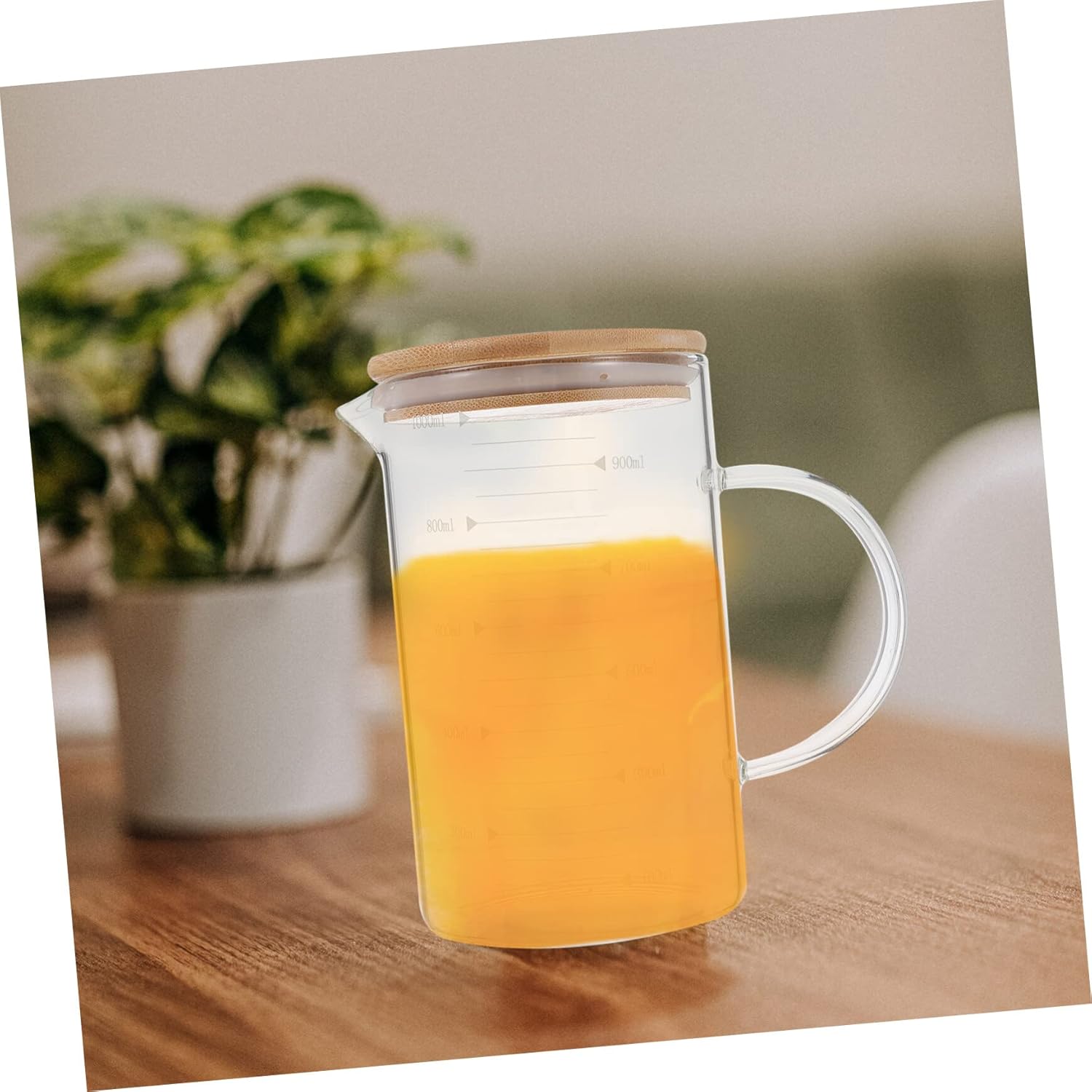 CHENYUEFAPackage Include 1 x Glass Measuring Cup 1 x coverCharacteristics -Material: Glass refrigerator pitcher.-Capacity: 1000ml Glass Measuring Cups- Manufactured with superior material which is wear- and -proof Graduated Water Mug.- With cover design, it can protect your milk or other from and glass water.- It is a simple but sturdy utility measuring tool for home, restaurant Pouring Jug.- Comfortable handle, fits hand feel, easy and convenient to hold beverage storage glasses.- Convenient measurements for your kitchen, cooking, drinking or more u coffee glass cup.- Clear measurement, convenient to use. Very clear at a glance, simple to control the do graduated measuring glass.Goods InformationEgg Mixing Bowl It is you to measure the volume of coffee and milk.glass water mug with scale This item is a measuring cup made of good material for and durable use.Kitchen Measuring Jug The cup is designed conveniently to measure and read the graduations with scale lines