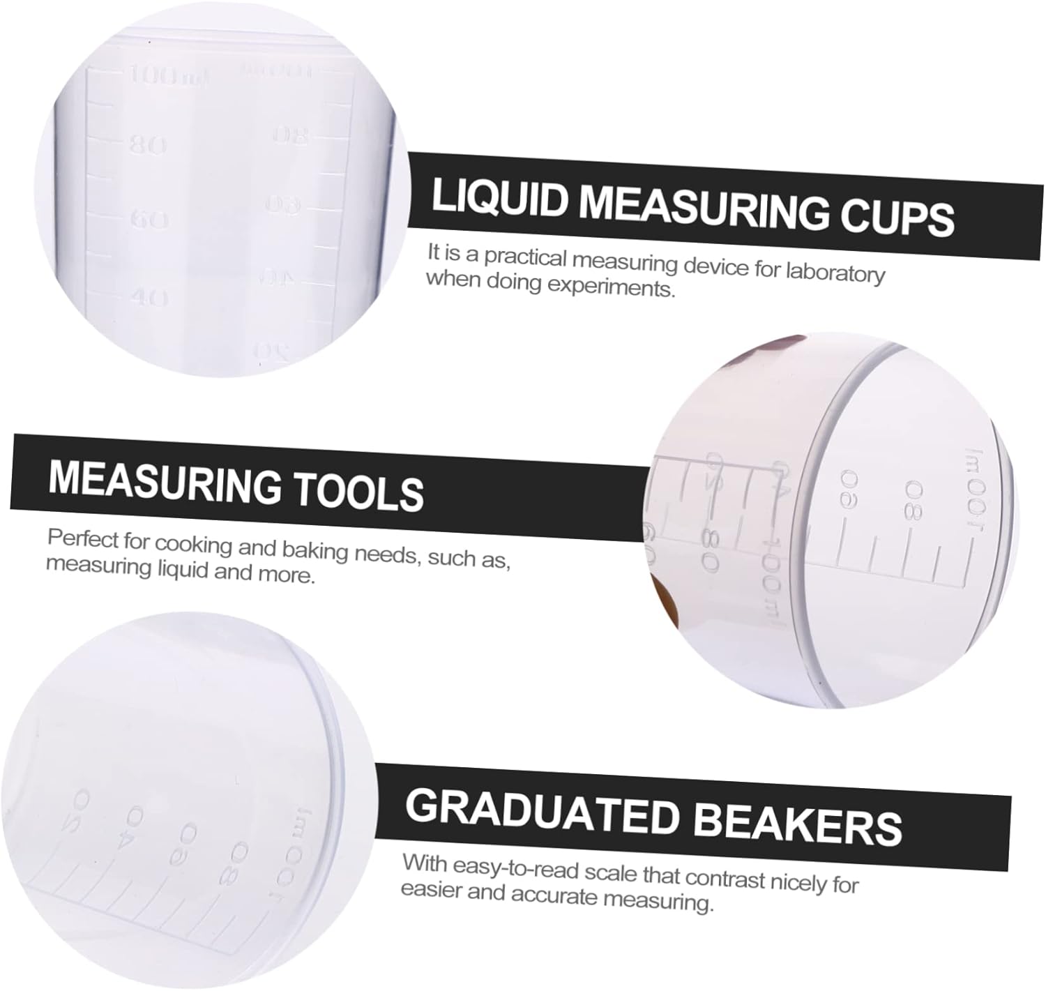 Package Include 80 x Measuring Cups Features - Size: 6.50 x 4.50 x 5.00 cm/ 2.55 x 1.77 x 1.97 inch butter. - Capacity of beaker: 100ml pitcher. - Color: Transparent plastic measuring cups. - Material: Plastic coffee. - Smooth and non-stick, easy to wash and dry after use. No need to worry about the clean problem resin epoxy. - Fine designed graduations convenient for exact reading and measuring liquid. - Wide mouth easy to extract and clean. Just use water, you can clean it simply lab. - Made of plastic material, make them more clear. - You can use it to measure rice, water, etc. It is a practical tool at kitchen measuring pitcher.Goods Descriptionclear epoxy This item is a set of measuring cups for laboratory and household use, which is made of plastic material.100 beaker You can know the liquid scale clearly.Multipurpose Mixing Cups Every cup is designed conveniently to measure and read the graduations with scale lines