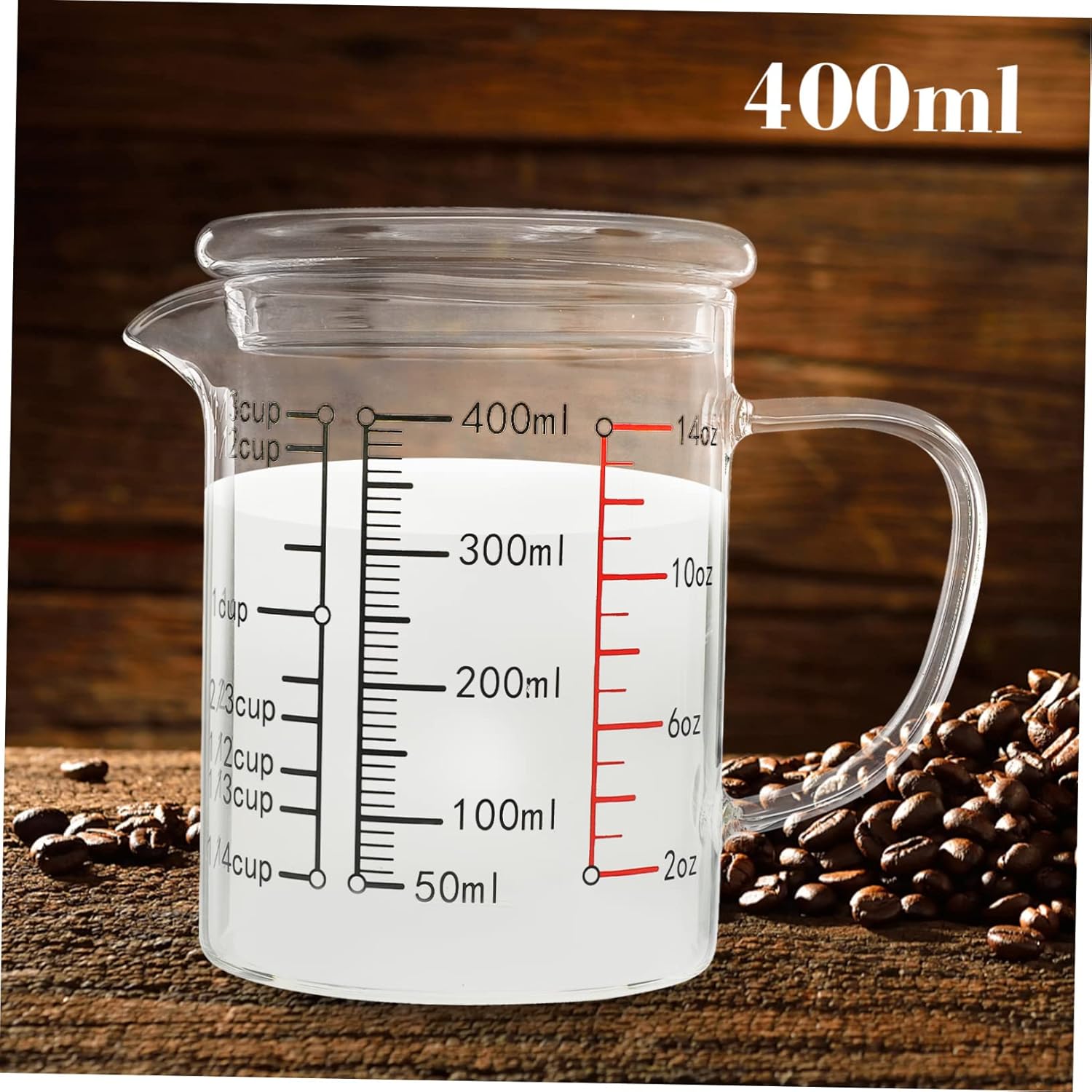 Package Include 5 x Glass Cup Features -Capacity:400ML clear cups -Material:Glass household measuring cup -Size:11.00X11.00X8.50cm/4.32X4.32X3 coffee cup with scale. -Color:As Shown practical measuring cups -The cup is mainly used to measure beverages such as coffee and milk and can be used for coffee making and roasting bar measuring cup. -Premium material and fine workmanship will give you a comfortable touch. Suitable for kitchen, baking, bar and home, etc large capacity measuring cups. -The scale is clear, can be very easy to see, easy to use, not easy to fade. Handle design, easier to hold and carry flour powder measuring cup. -Using high-class materials, the temperature difference between hot and cold does not burst, and it coffee container. -Smooth surface, easy to clean, can be used over and over again, bring much convenience to you clear measure cup.Goods Informationglass coffee mug Easy to clean and store.glass containers for liquids This item is a measuring cup, which is made of premium and high-class glass material for durable and practical use.convenient measuring cup Perfect for home, restaurant, cafe shop, hotel and much more use.coffee glass with lid Simple and elegant, it is easy and convenient to use