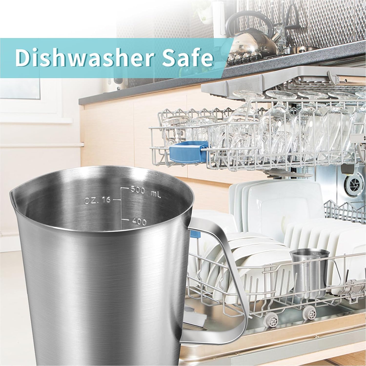 • Heavy Duty: Lighter than some heavy glass measuring cup with the same capacity. Wide mouth design of the cup, makes it so easy to clean and use.Solid Grip: Great handle. The handle has great grip to hold the cup. The angled handle allows you to hold and pour liquid securely, and it is spot welded on. With closed handle, easy to store, just hang it on the wall of your kitchen.[Upgraded with OZ, ML, Cup Measurement Scales] Easy to Use: The measuring scale