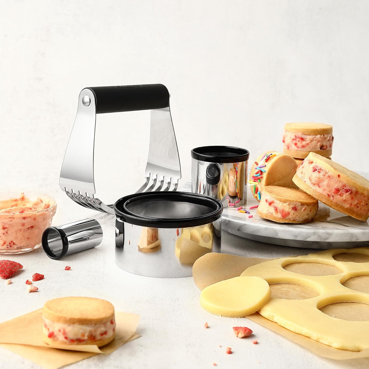 Spring Chef Stainless Steel Magnetic Measuring Cups & Spoons, Set of 15 & Large Dough Blender & Biscuit Cutter Set - 2 Product Bundle - Black
