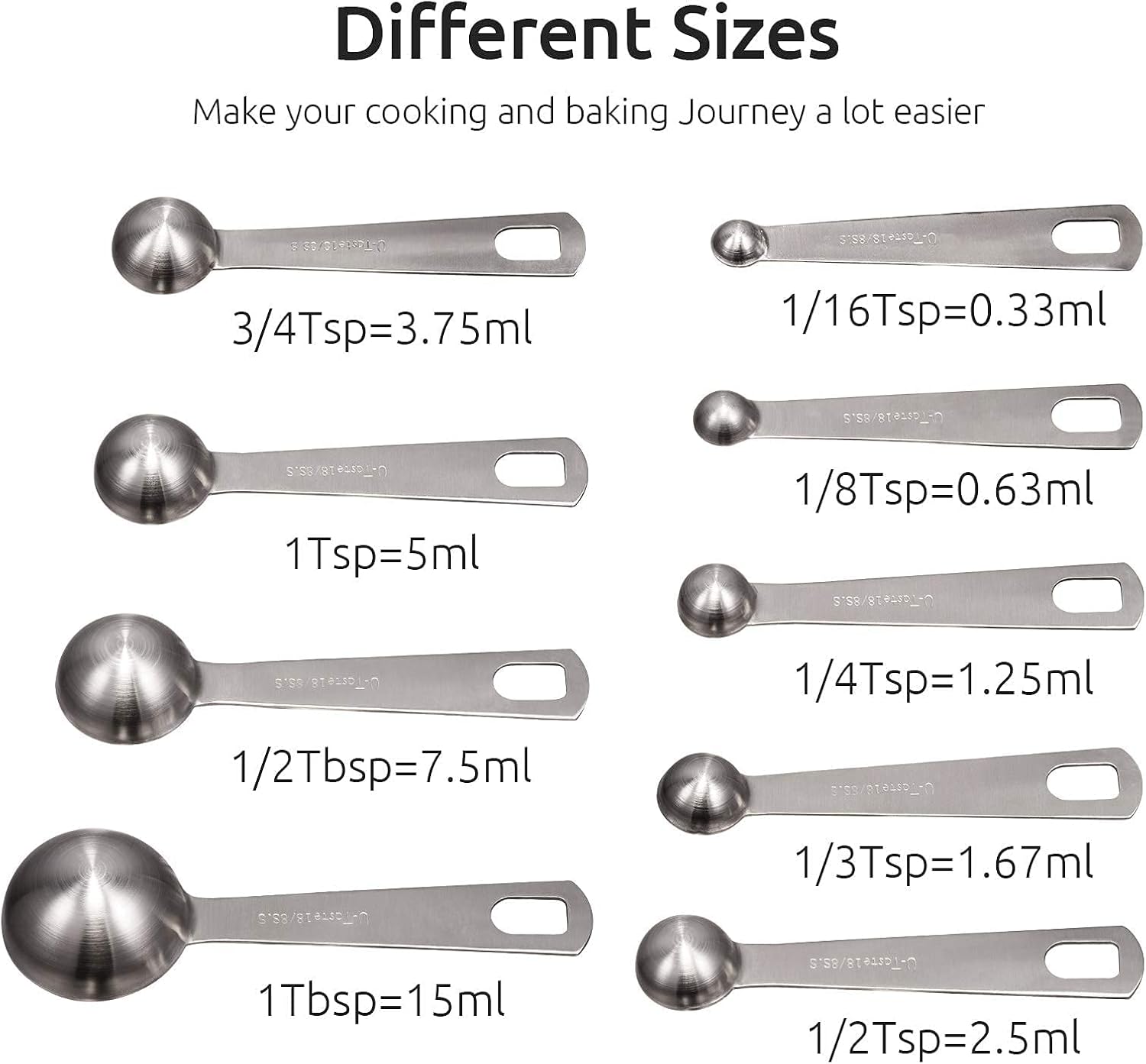 U-Taste 18/8 Stainless Steel Measuring Spoons Set [Well-crafted handles & edge for you] Imagine that the handles bend when you are measuring sugar and the edge is too sharp that cut your hand. How awful is that? Ask 16.97% persons, they knew that. Have a try of our thicker handles which don't bend easily and long enough to dip into the deepest container. The spoons are deep to hold both dry and liquids better without spilling. The rims are polished nicely to avoid any injury. [Dishwasher safe & easy to store] Do you have cleaning and storage problems as 36.3% persons do? Luckily, this set can be washed both by hand and dishwasher, no problems, even with the dry cycle on! D-ring included allows you to nest them together saving storage space and to easily get the ones you need. U-Taste 18/8 Stainless Steel 16 inch Adjustable Rolling Pin with Silicone Removable Thickness Rings, Nonstick Kitchen Roller Pin for Baking Cookies Pastry Pizza Pasta Dough Fondant (Teal/Aqua Sky) [Anti-rust 18/8 stainless steel] No one wants their dough to mix with rust stains, that’s why the rust-proof 18/8 stainless steel would be our choice. It’s safe with food touch, no more worries about corroding. No painting will chip off and no smell will transfer to the dough because it’s bare stainless steel! Easy to put the rings on and take them off for cleaning by hand or use the dishwasher. No hustle, no troubles. [Engraved Measurement and Seamless Design] Easy to read with clear engraved measurement on it and never wash off over time. You can roll the dough whatever the size you need. The one piece seamless design makes sure that the water will not seep into the rolling pin. The 16in length is suitable for nearly all baking tasks. You can leave them in the fridge to keep it cool and nonstick to roll out your dough. A great gift for the bakers to make tortellini, pasta, pie crust, pizza dough and