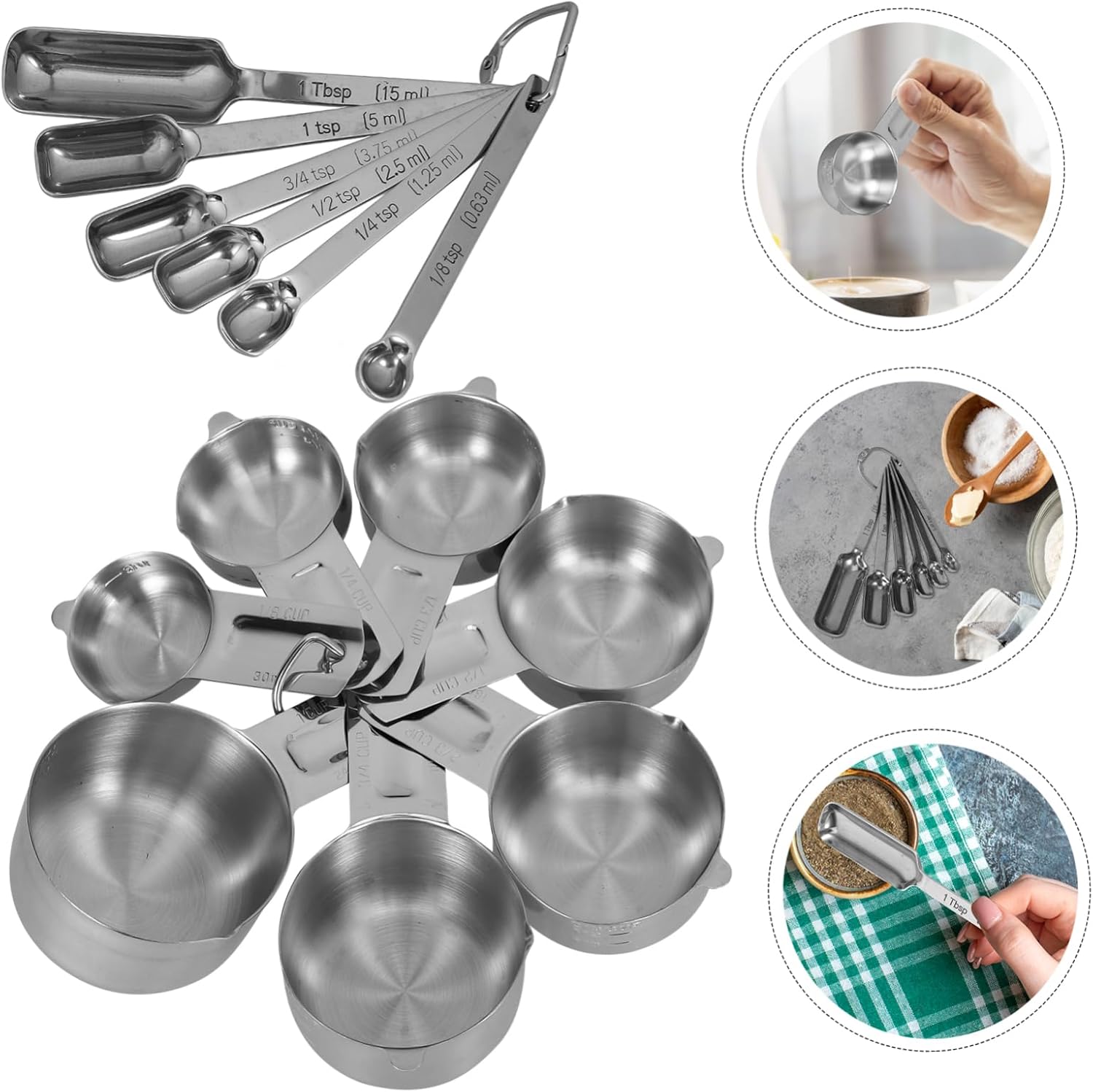 Package List 7 x measuring cups 6 x measuring spoons 1 x Levelling rule Characteristics -Color:Silver reusable measuring spoons -Measuring : 1/8TSP0.63ML,1/4TSP1.25ML,1/2TSP2.5ML,3/4TSP3.75ML,ITSP5ML,1TBSP15ML teaspoon measuring spoons -Size:13.00X8.20X5.00cm/5.11X3.22X1.97in (Large Measuring Cup) cat measuring spoons -Material:304 stainless steel tablespoon measure -Size:16.00X2.70X1.20cm/6.29X1.06X0.47in (Large Measuring ) measuring cups -Measuring Cup:1/8CUP 30ML,1/4CUP 60ML,1/3CUP 80ML,1/2CUP 120ML,2/3CUP 160ML,3/4CUP 180ML, 1CUP240ML metric measuring cups and spoons - This set of measuring cups and spoons is a versatile and essential tool for any kitchen, allowing you to accurately measure ingredients for all your favorite recipes measuring spoons. - The feature of these measuring cups and spoons more , keeping them together and saving you even more space in your kitchen reusable measuring cups. - With their sleek polished look and matte finish, these measuring cups and spoons are not only functional, but also stylish and elegant teaspoons measuring . - Made of stainless steel, these measuring cups and spoons are , ensuring you can use it for a long term measuring spoons.Goods Descriptionmeasuring cups Can be used to scoop coffee beans, pepper, pepper, milk and other spices.metric measuring cups and spoons This is a measuring and measuring cup set made of stainless steel material, which is and can be used for a long time.measuring spoons Suitable for coffee, milk , sugar, etc