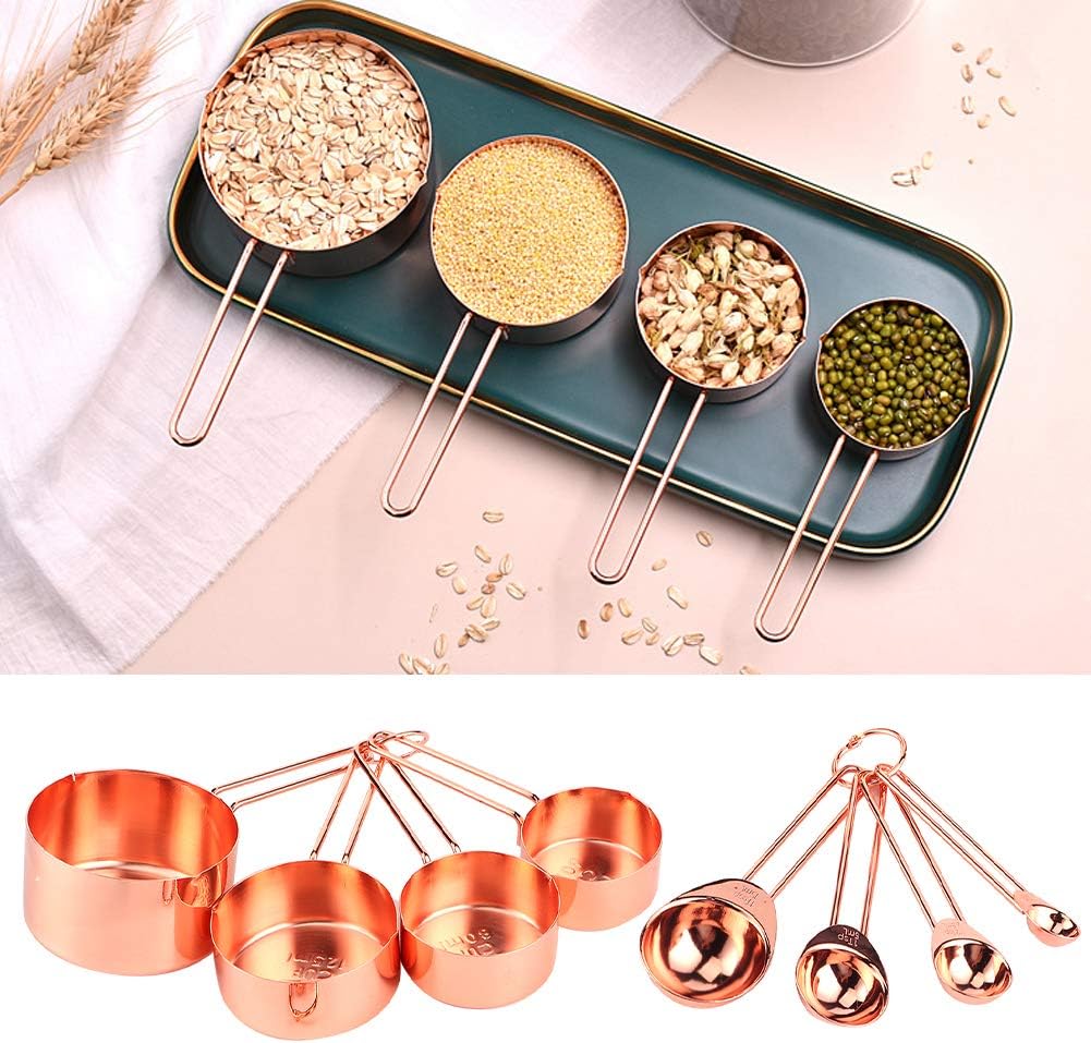 IHZVMUCXJGSpecification:Condition: Brand NewItem Type: Measuring Spoon CupMaterial: 304 Stainless SteelColor: Rose Gold, Gold Weight: Approx. 338g / 11.9ozApplication: Home, Milk Tea Shop, Bar, Coffee Shop, etc.Product Size:1/4CUP 60ml: Approx. 56x78mm / 2.2x3in1/3CUP 80ml: Approx. 62x78mm / 2.4x3in1/2CUP 125ml: Approx. 72x78mm / 2.8x3in1CUP 250ml: Approx. 82x78mm / 3.2x3in1/4 Teaspoon 1.25ml: Approx. 19x78mm / 0.7x3in1/2 Teaspoon 2.5ml: Approx. 26x78mm / 1x3in1 Teaspoon 5ml: Approx. 32x78mm / 1.2x3in1 Tablespoon 15ml: Approx. 42x78mm / 1.6x3inPackage List:8 x Measuring Spoon2 x BuckleNote:1.Pleaseallow0?1incherrorduetomanualmeasurement.Thanksforyourunderstanding.2.Monitorsarenotcalibratedsame,itemcolordisplayedinphotosmaybeshowingslightlydifferentfromtherealobject.Pleasetaketherealoneasstandard.